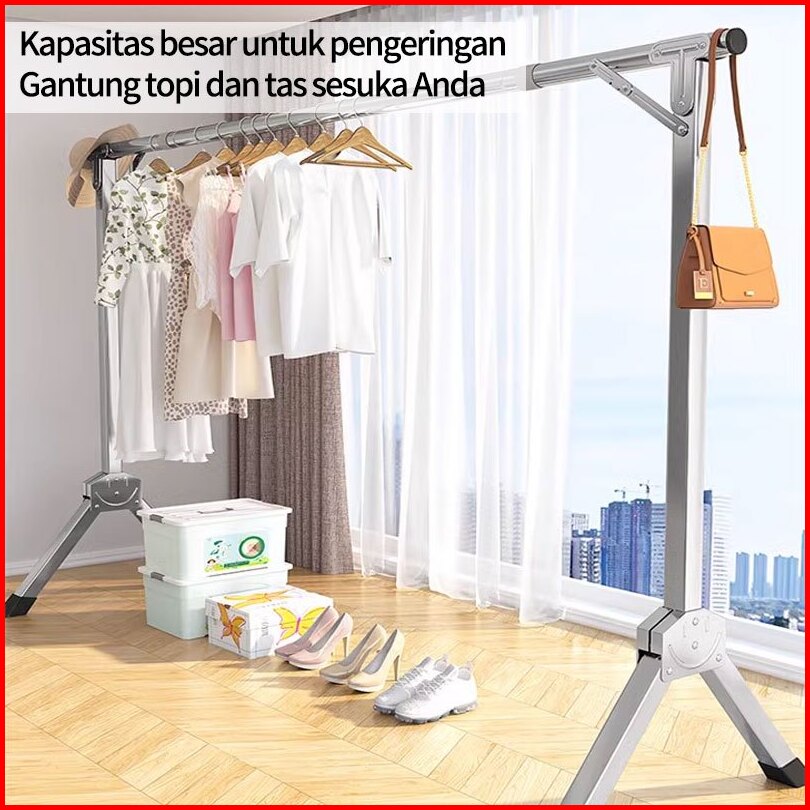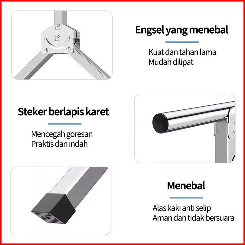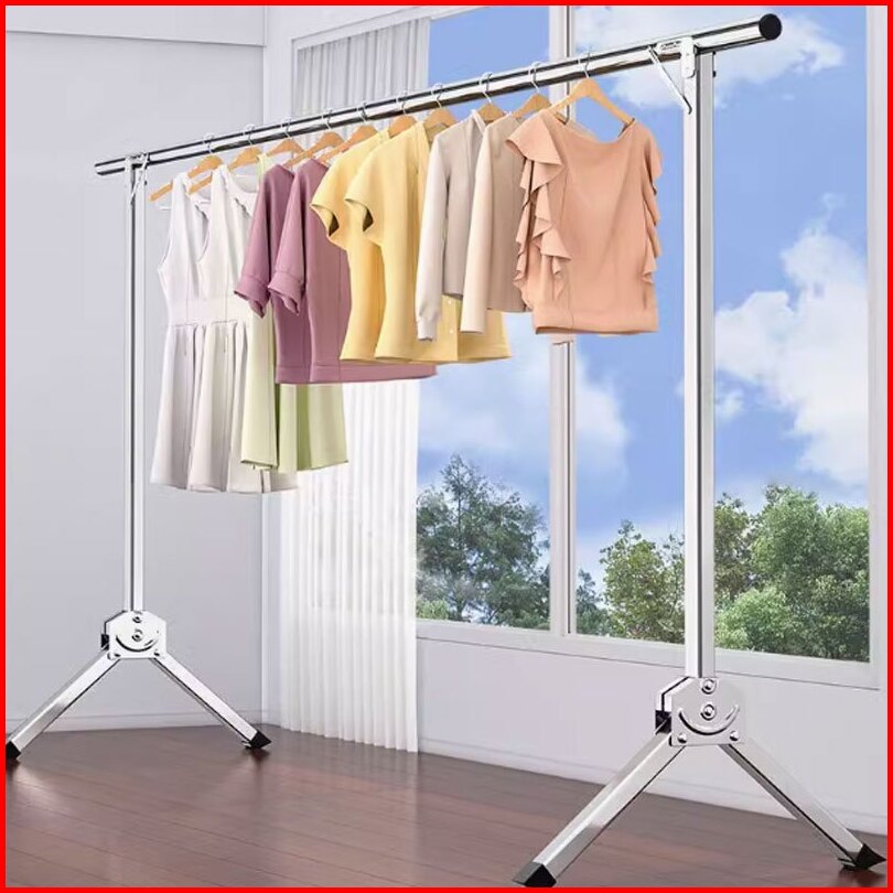 240cm Jemuran Baju Stainless Steel Jemuran Single Pakaian Lipat Single Jemuran Portable Hangertidak Diperlukan Instalas