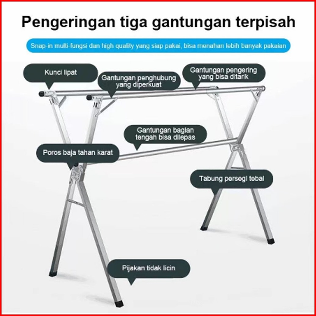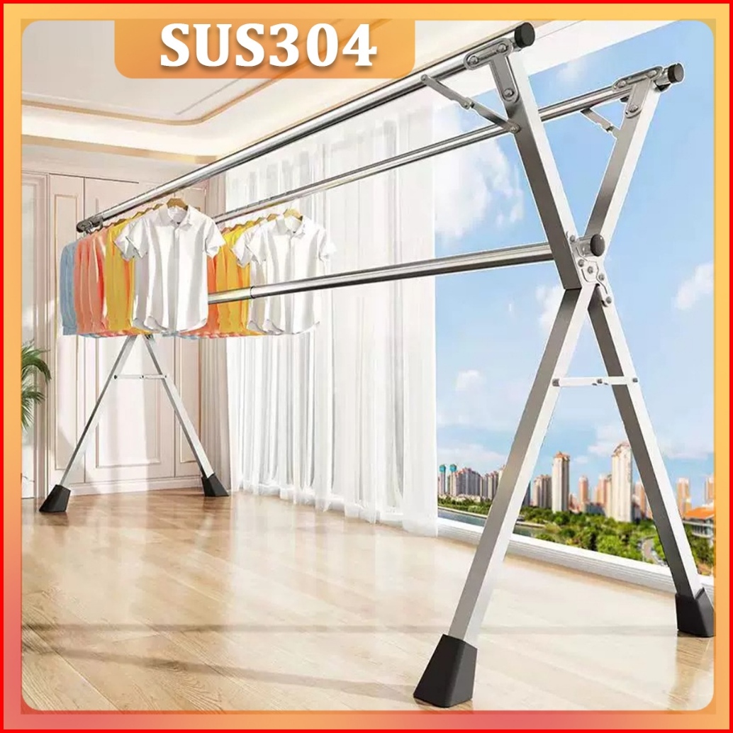 Sus-304 Jemuran Baju Stainless Steel Jemuran Pakaian Jemuran Baju Lipat Stainless Steel Portable Rak Jemur Pakaian Anti