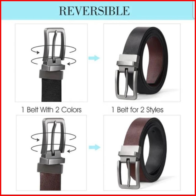 Ikat Pinggang Pria Kulit Tusuk Reversible Bolak Balik Hitam Coklat Premium