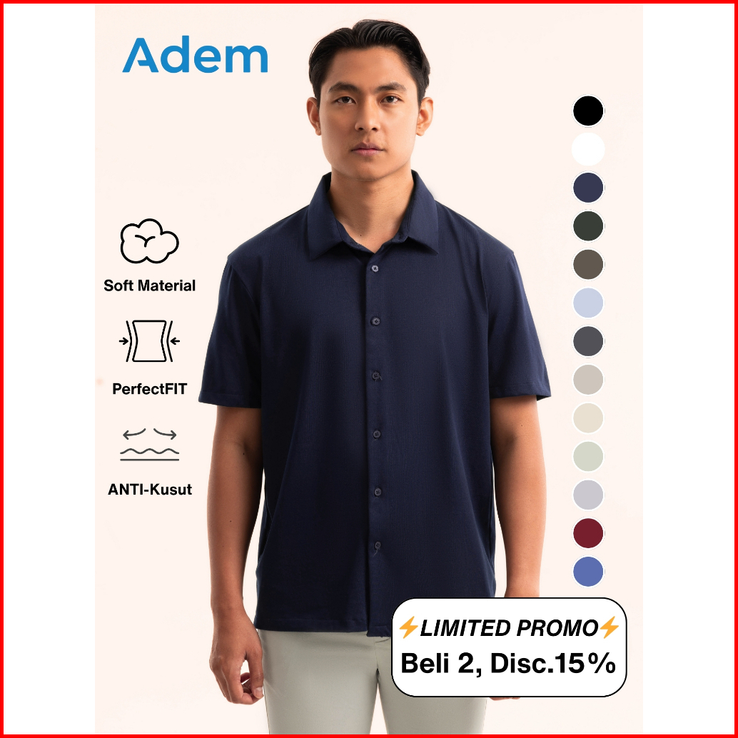Klotifai - Adem Ss Navy - Kemeja Lengan Pendek Pria
