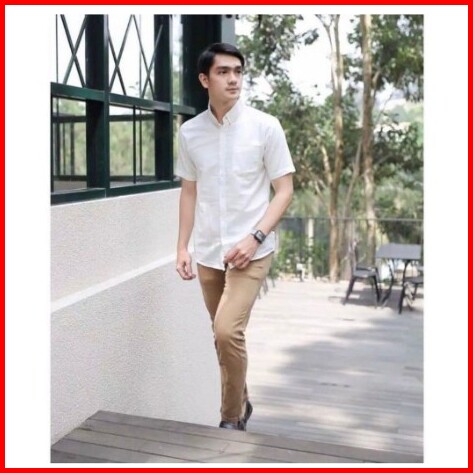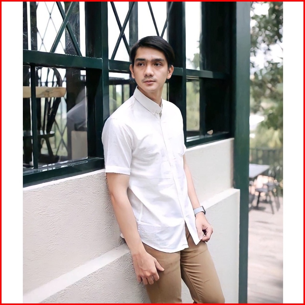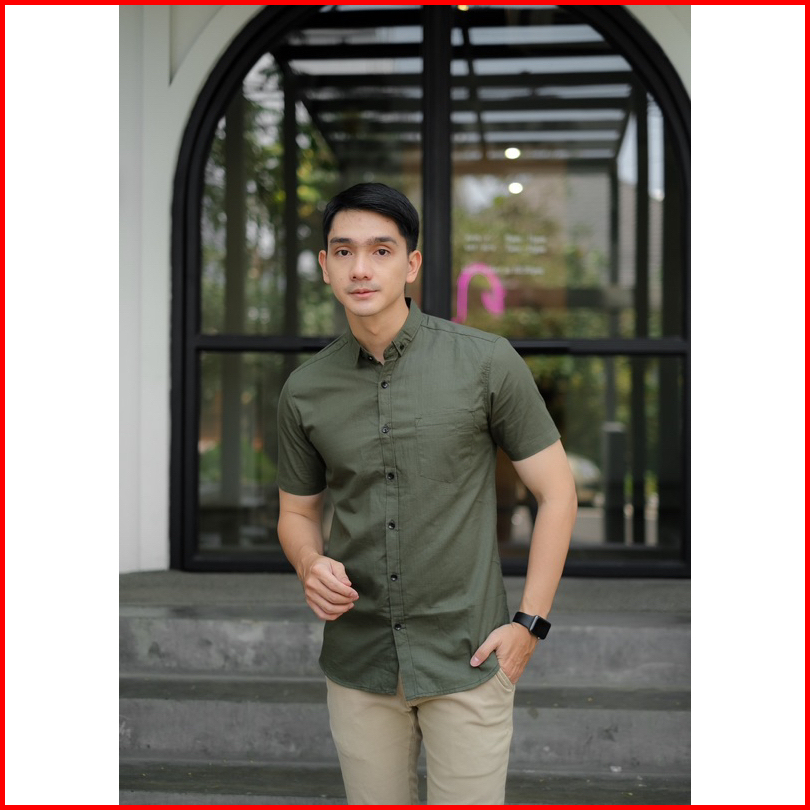 Kemeja Polos Pria Cowo Lengan Pendek Slimfit Hitam Putih Navy Army Maron
