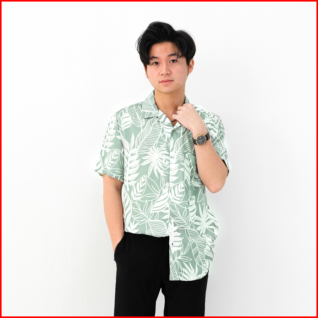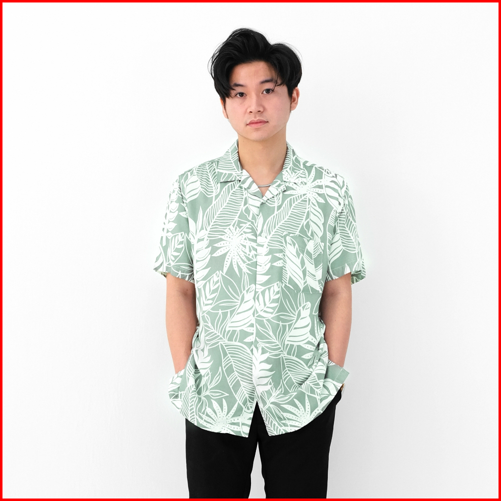 Sanvanina Kemeja Hawaiian Slim Fit Printing Panama Kemeja Pantai Motif Abstrak Daun E-2004