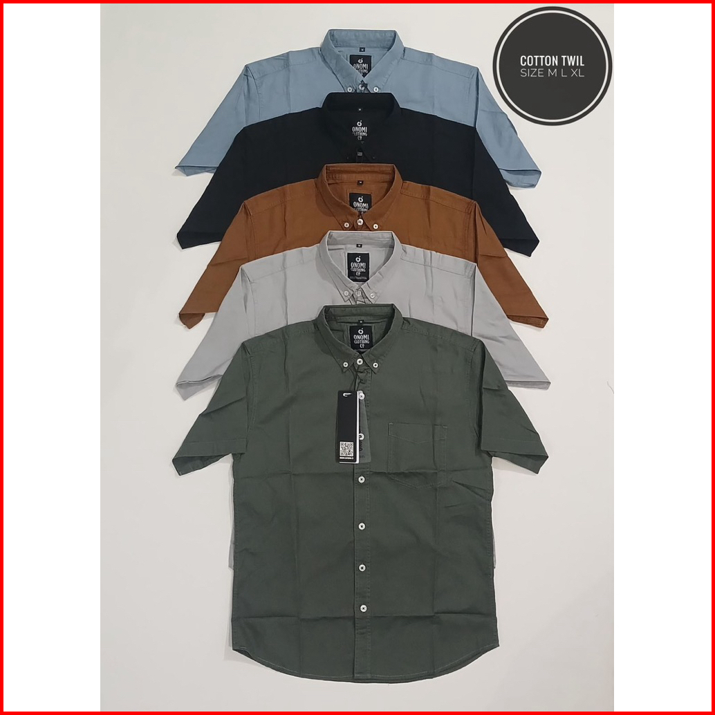 Kemeja Onomi Original Polos Pendek Pria Dewasa Premium Bahan Cotton Twil