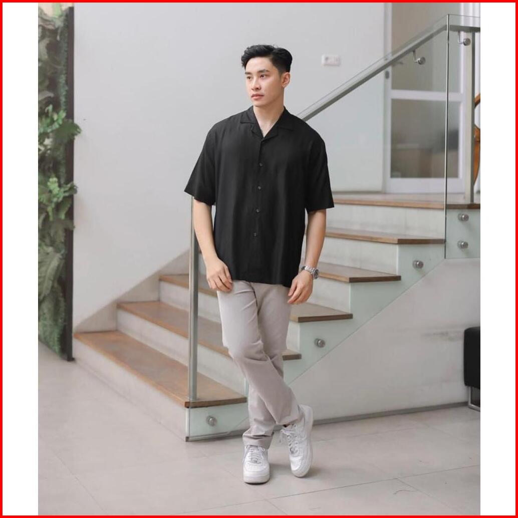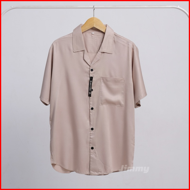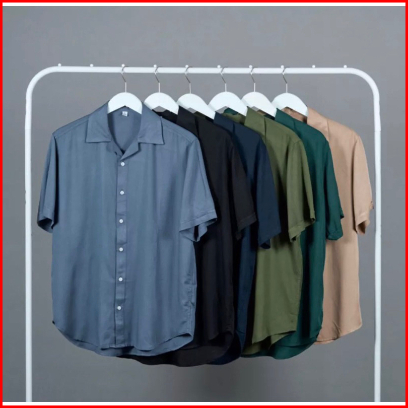 Kemeja Katun Rayon Polos Lengan Pendek Premium Pria Wanita Short Shirt