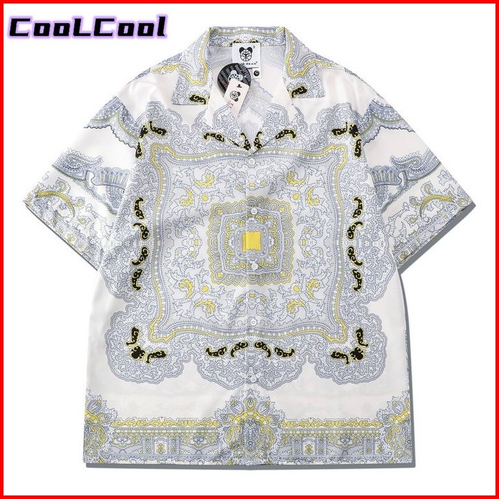 New 2023 Fashion Kemeja Batik Printing Wanita Pria Kemeja Lengan Pendek V-neck Kasual Kemeja Putih Pendek Loose Men Wome