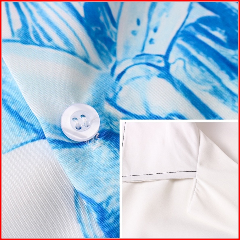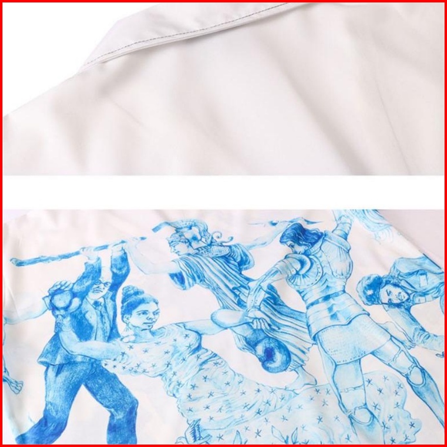 New Summer Men And Women White Vintage Print Hawaiian Shirt Street Personality Clothes Loose Short Sleeve Casual Party B