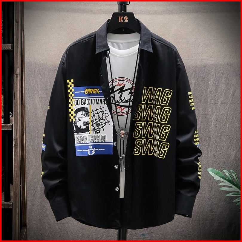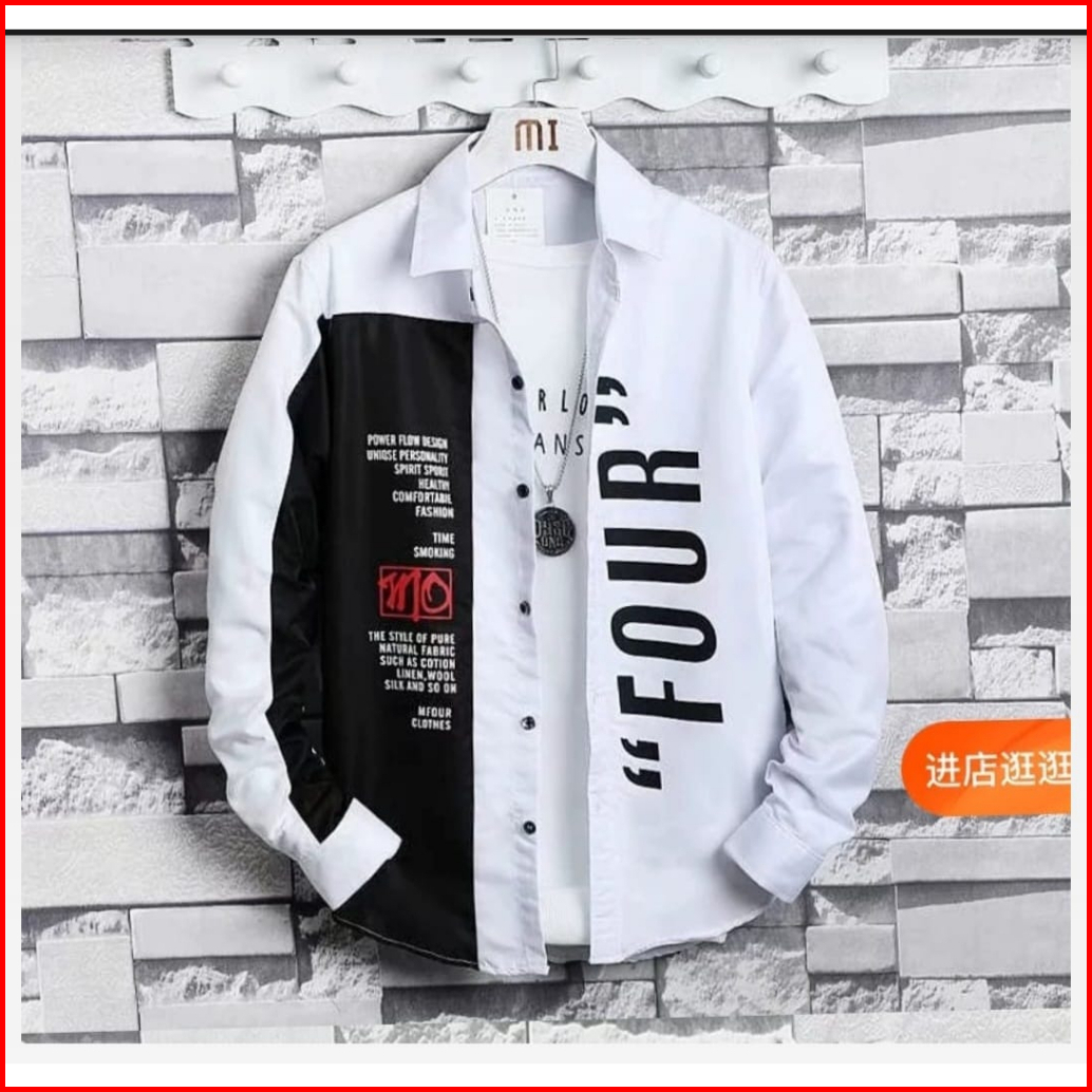 Kiyowo-kemeja Fashion Hem Motif Terbaru Music Lengan Panjang Pria