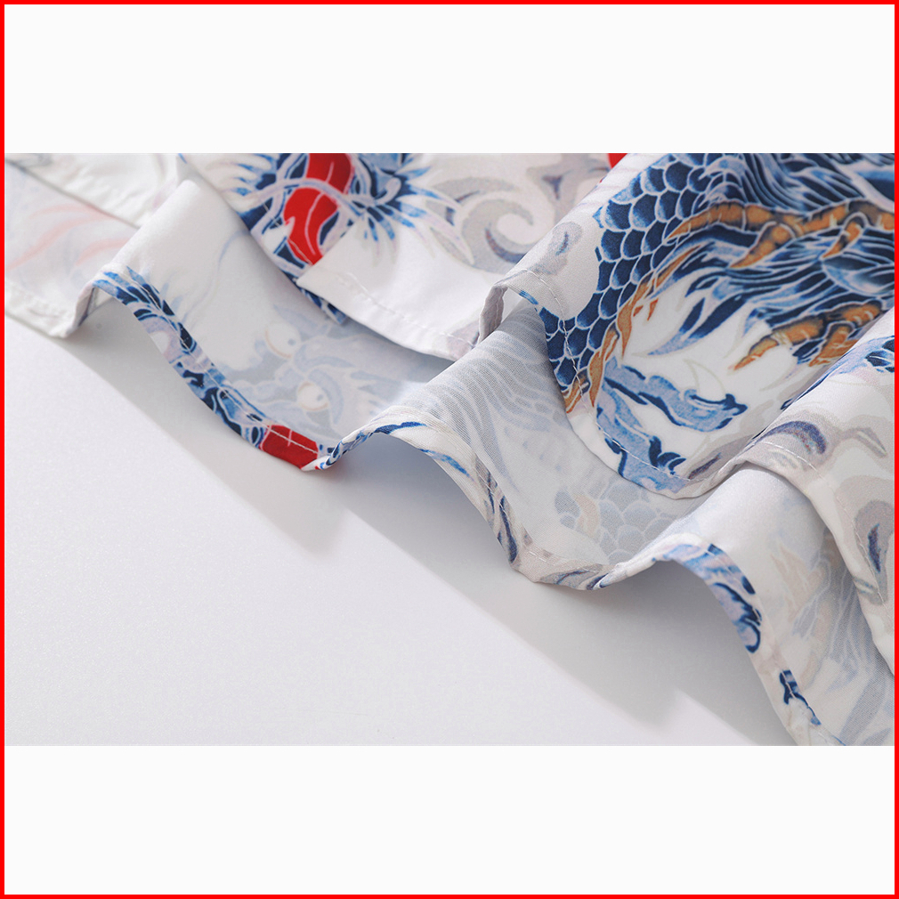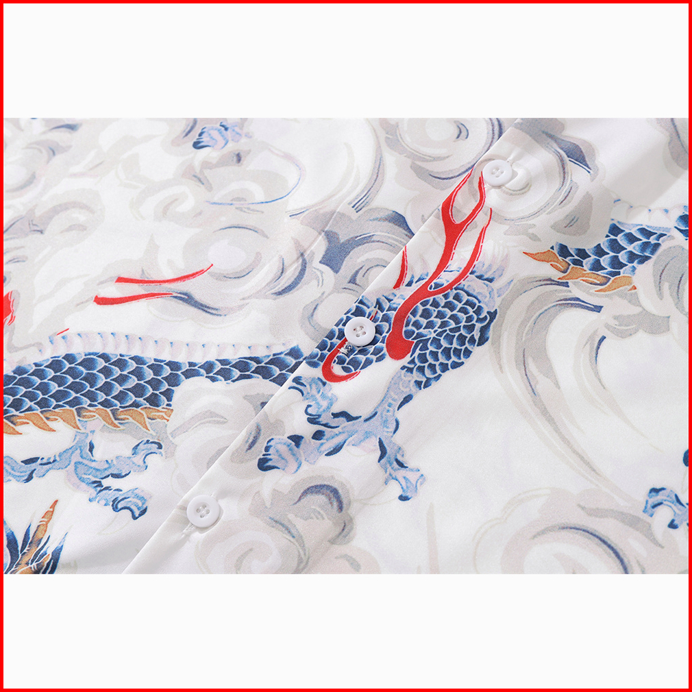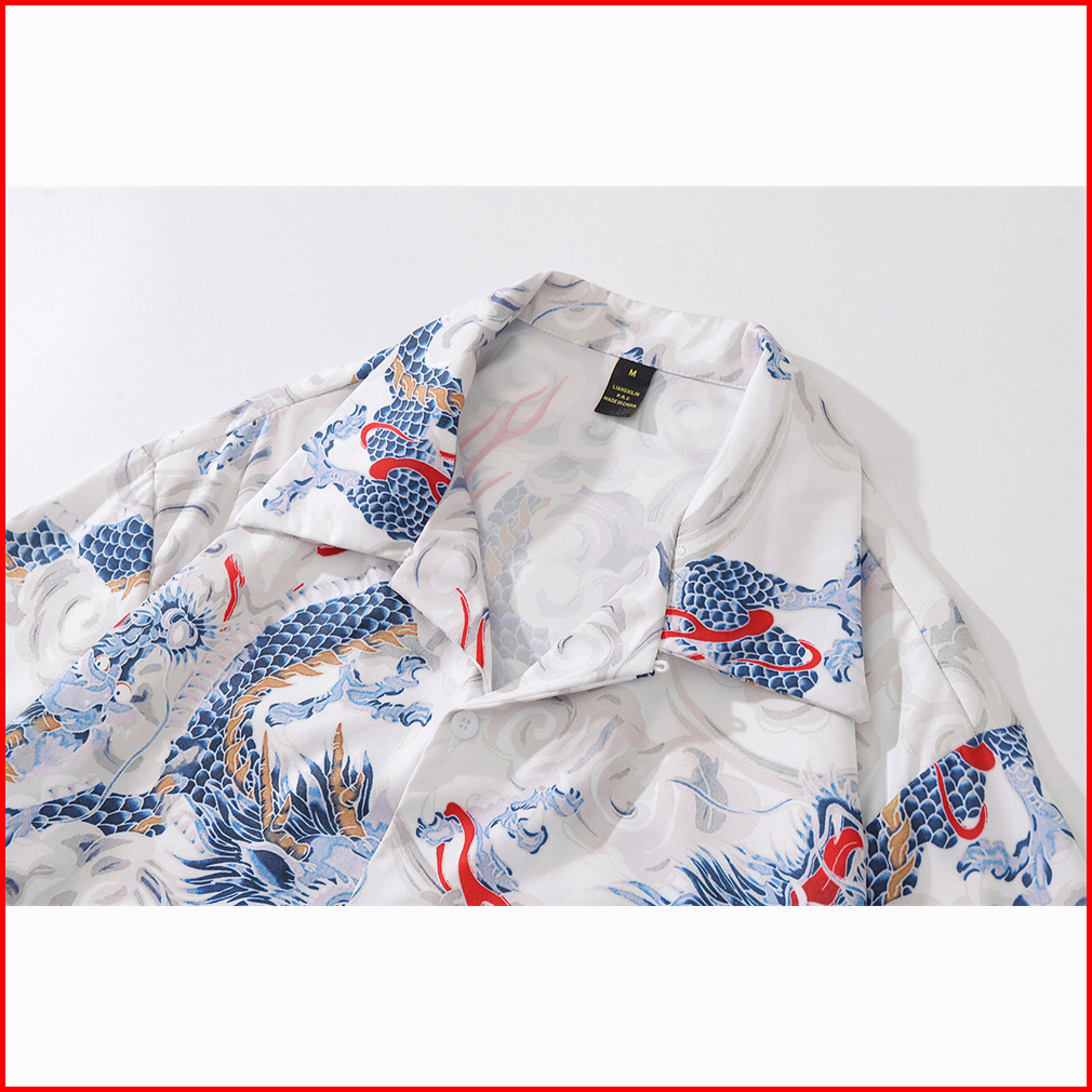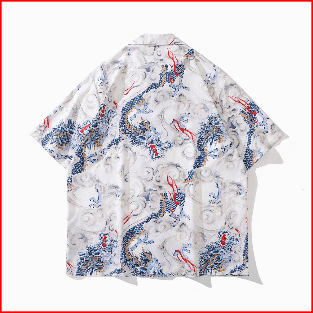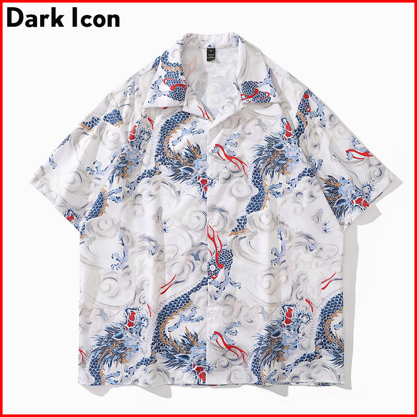Dark Icon Kemeja Vintage Pria Dragon Full Print Shirt Thin Material Street Shirts Button Down Retro Shirt Man 90an Outfi