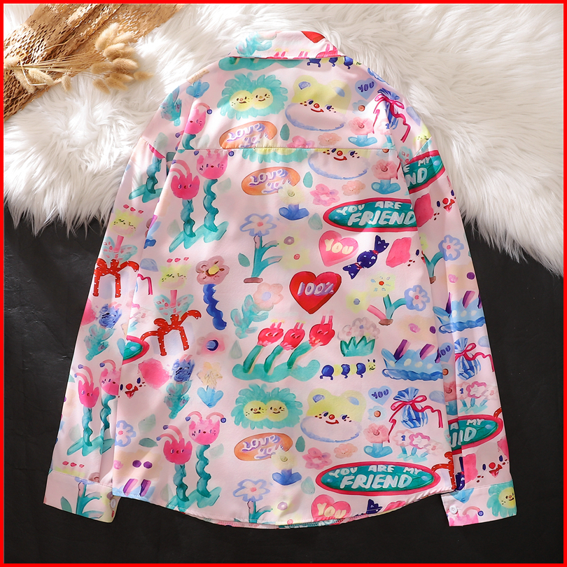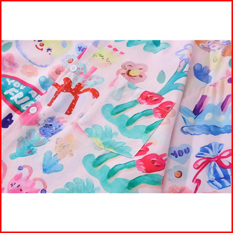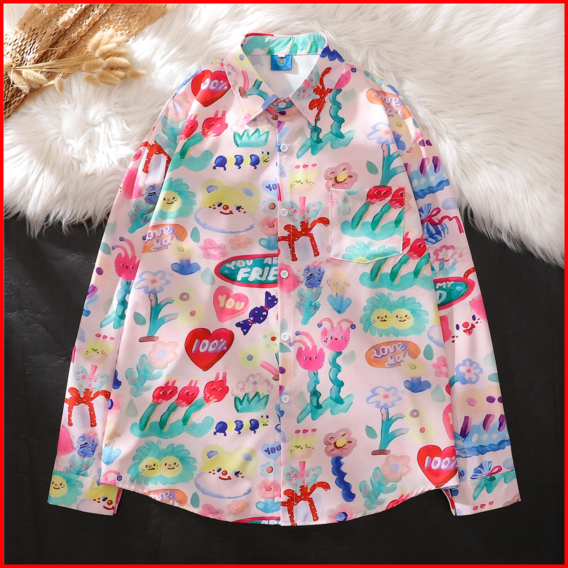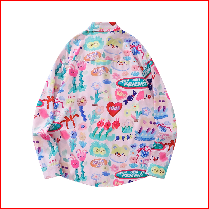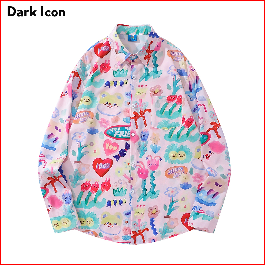 Dark Icon Pink Graffiti Full Print Oversized Shirt Men Women Long Sleeve Kemeja Pria Polos