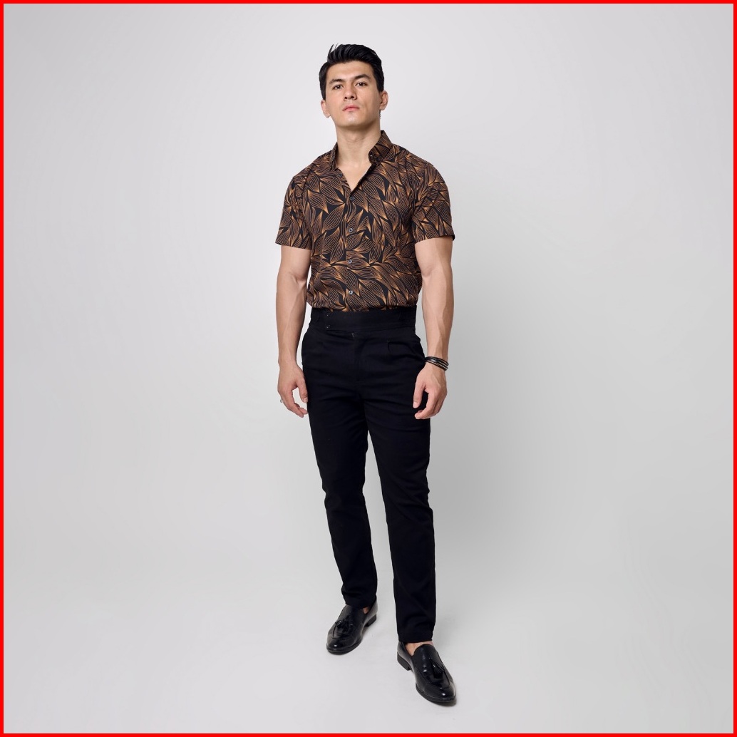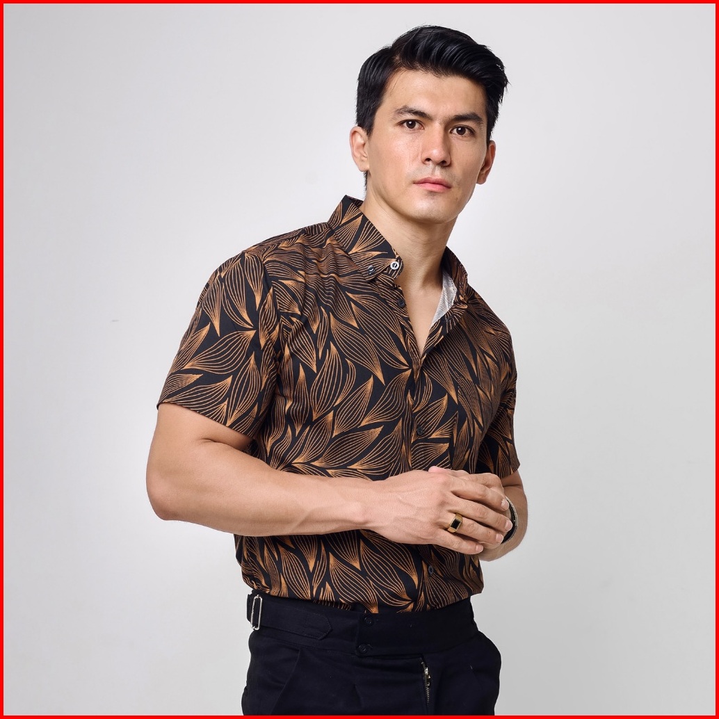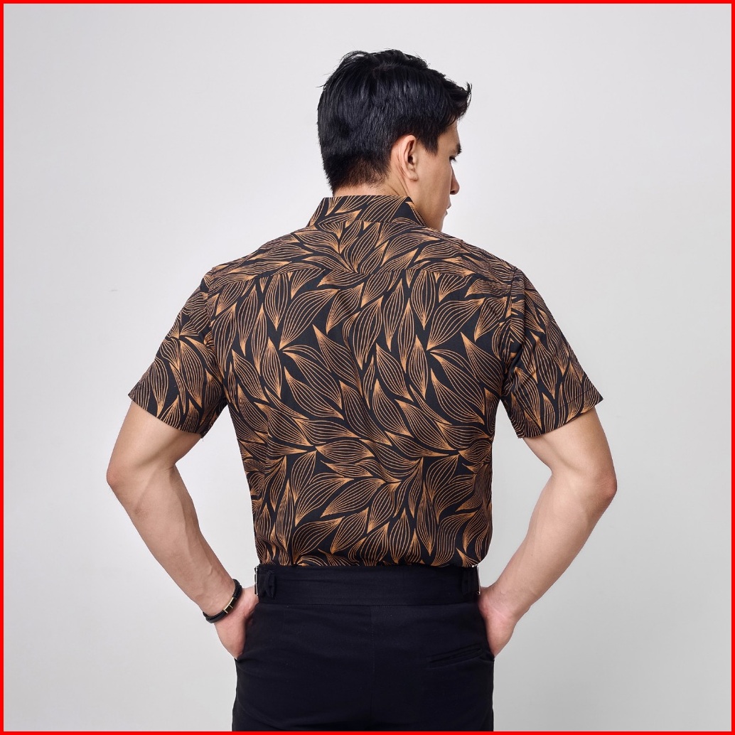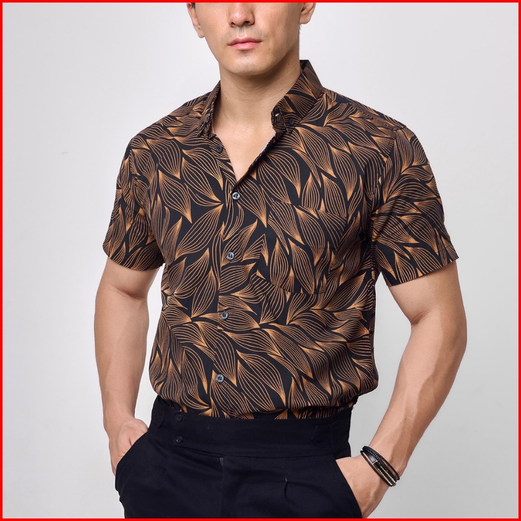 Vengoz Atasan Kemeja Pria Printing Slim Fit - Leaves Ss