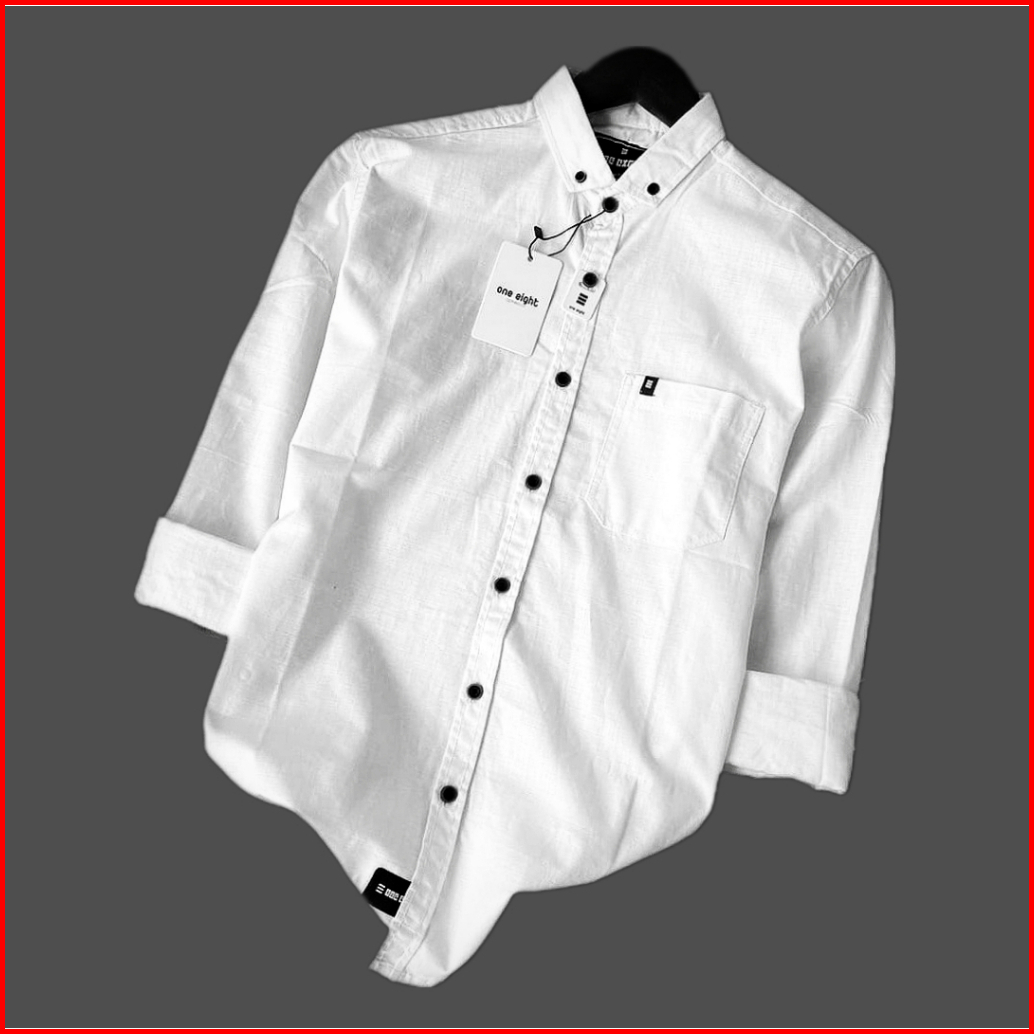 Kemeja Polos Pria Lengan Panjang Warna Putih Bahan Katun