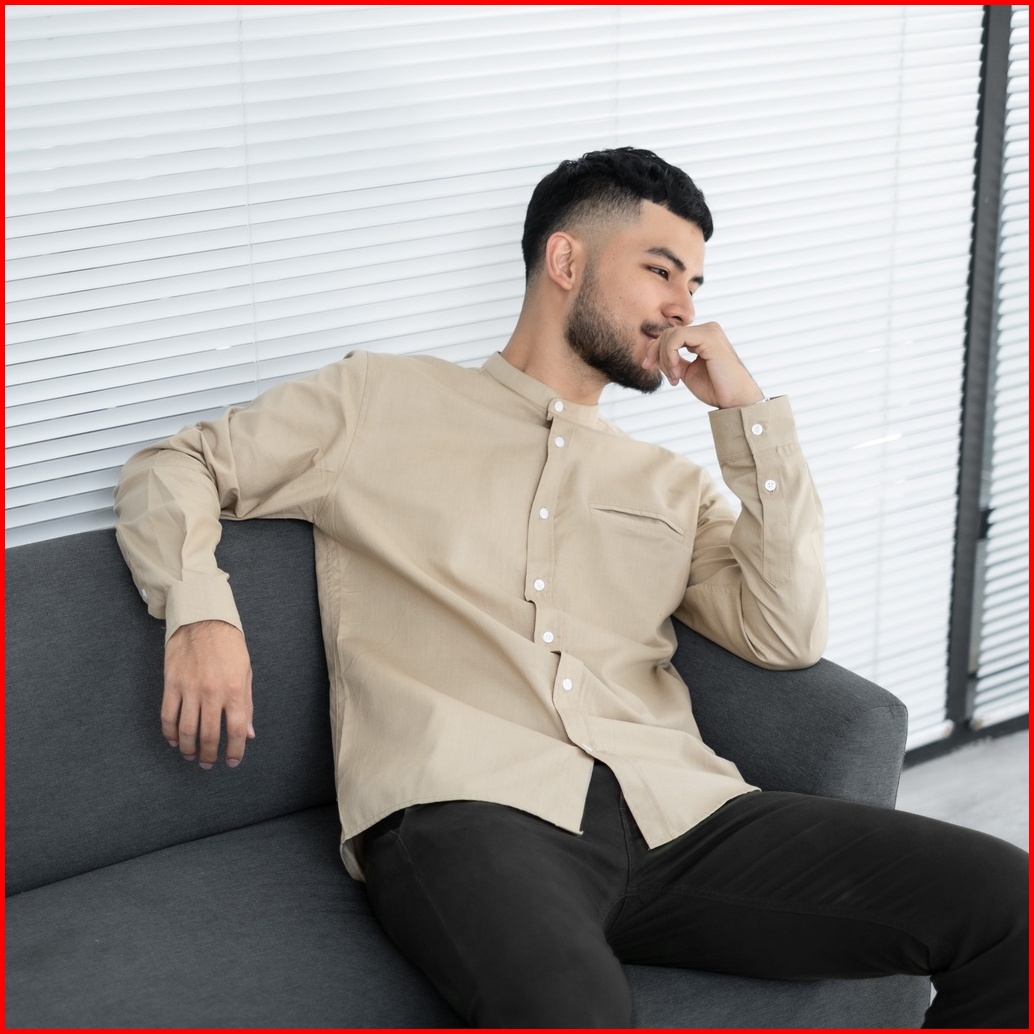 Kemeja Pria Shanghai Lengan Panjang Polos Katun