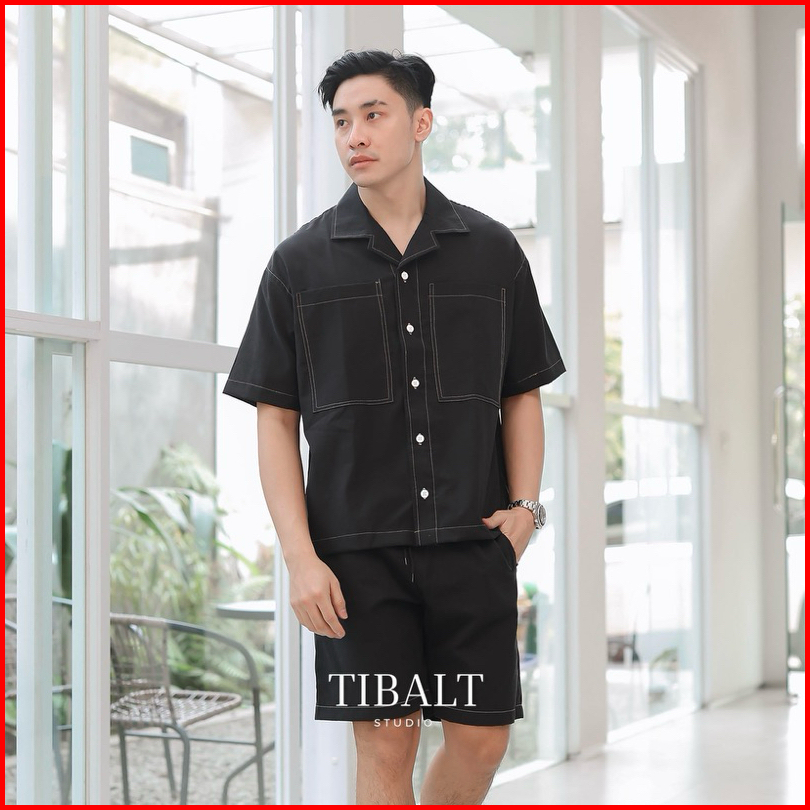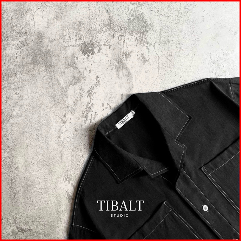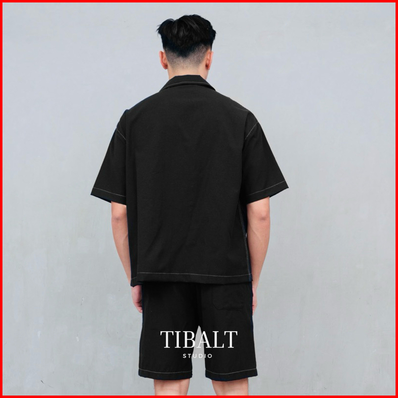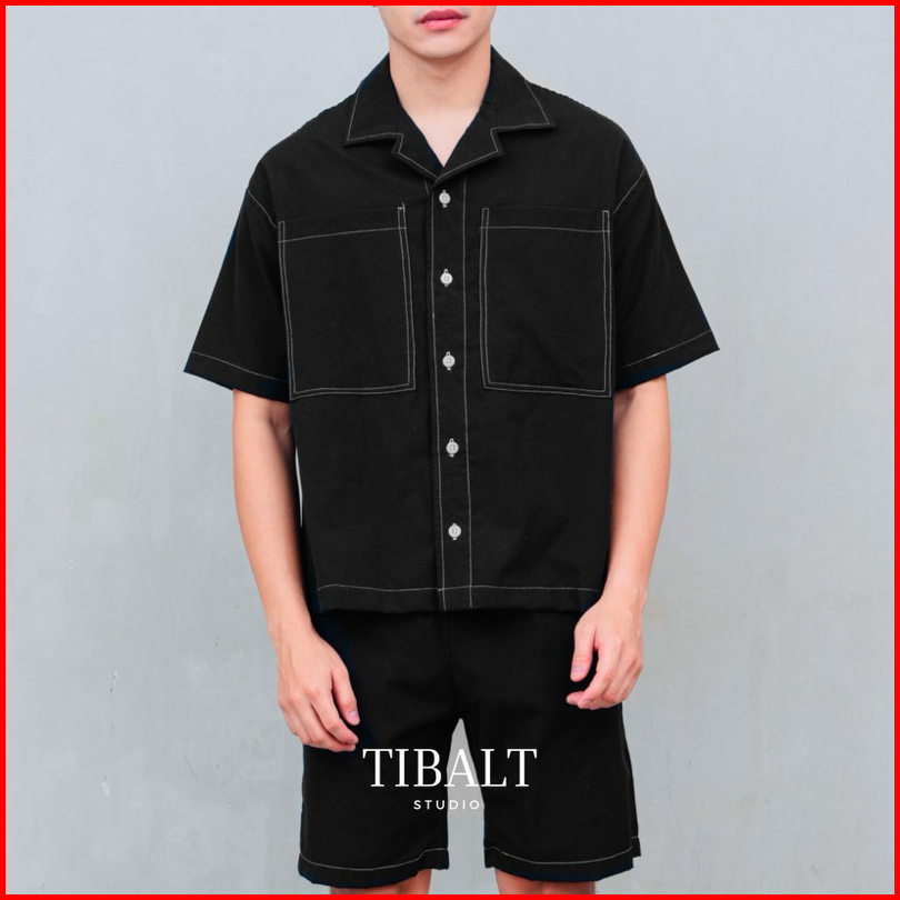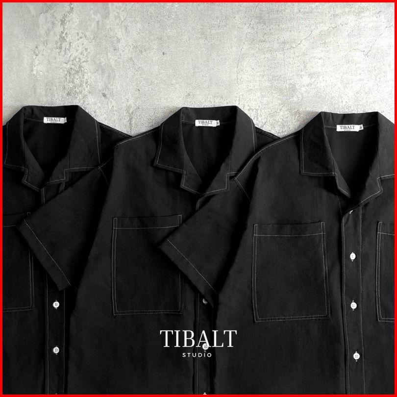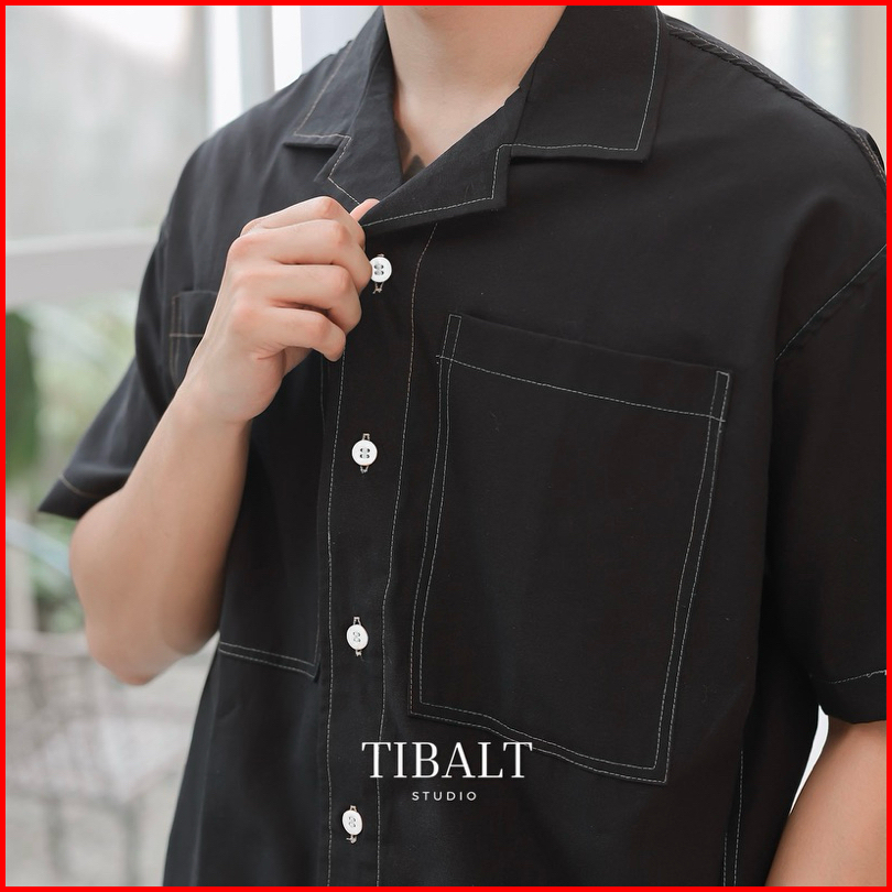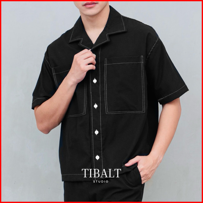 Tristan Stitch Shirt Black Kancing Stitch Warna Putih