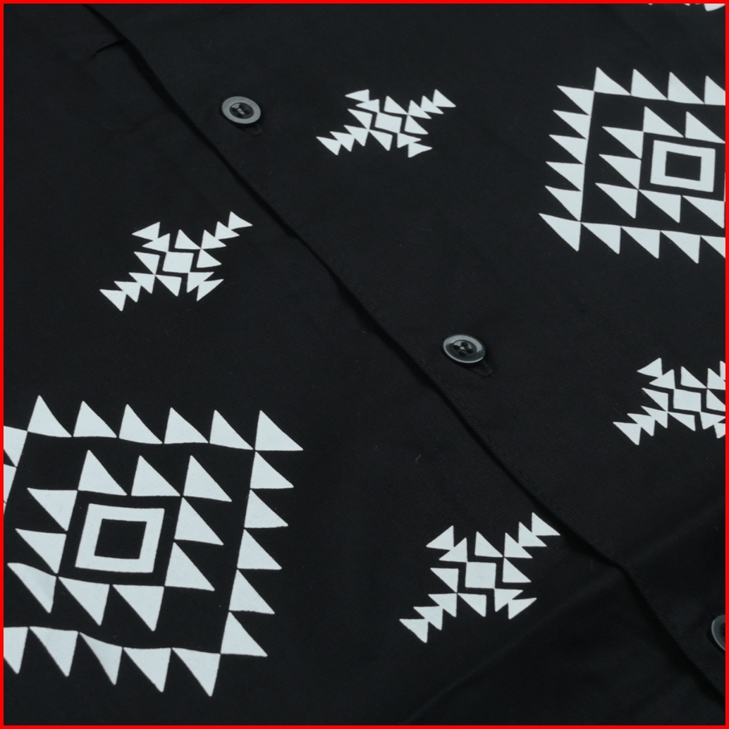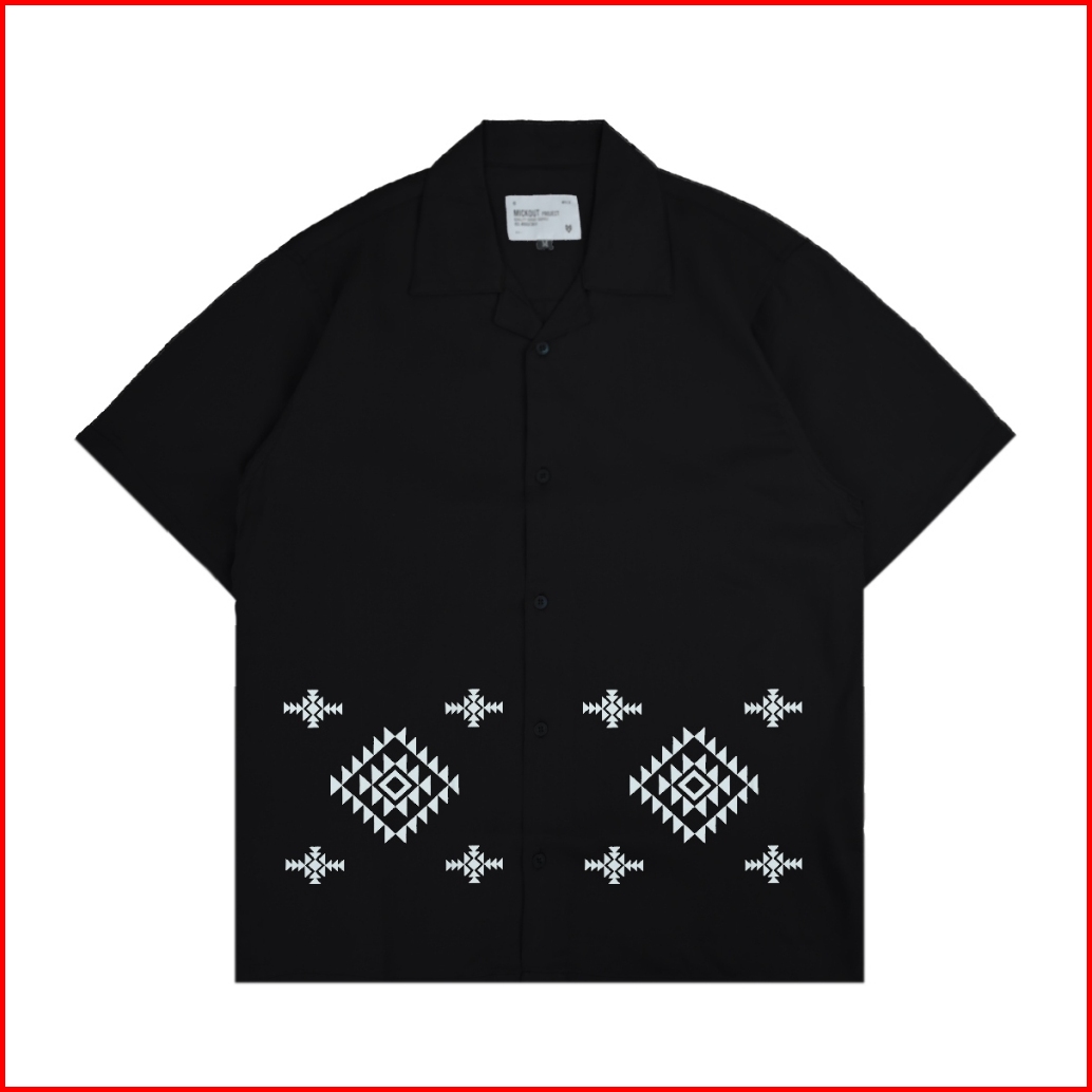 Mickout Tribe Casual Shirt - Kemeja Kasual Print Pria Katun Rayon Relaxed Fit Lengan Pendek - Hitam