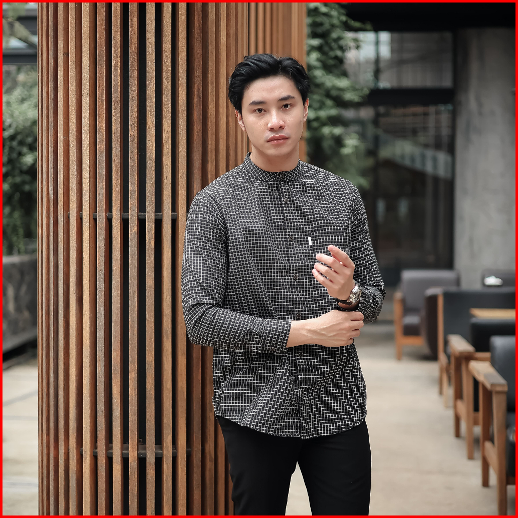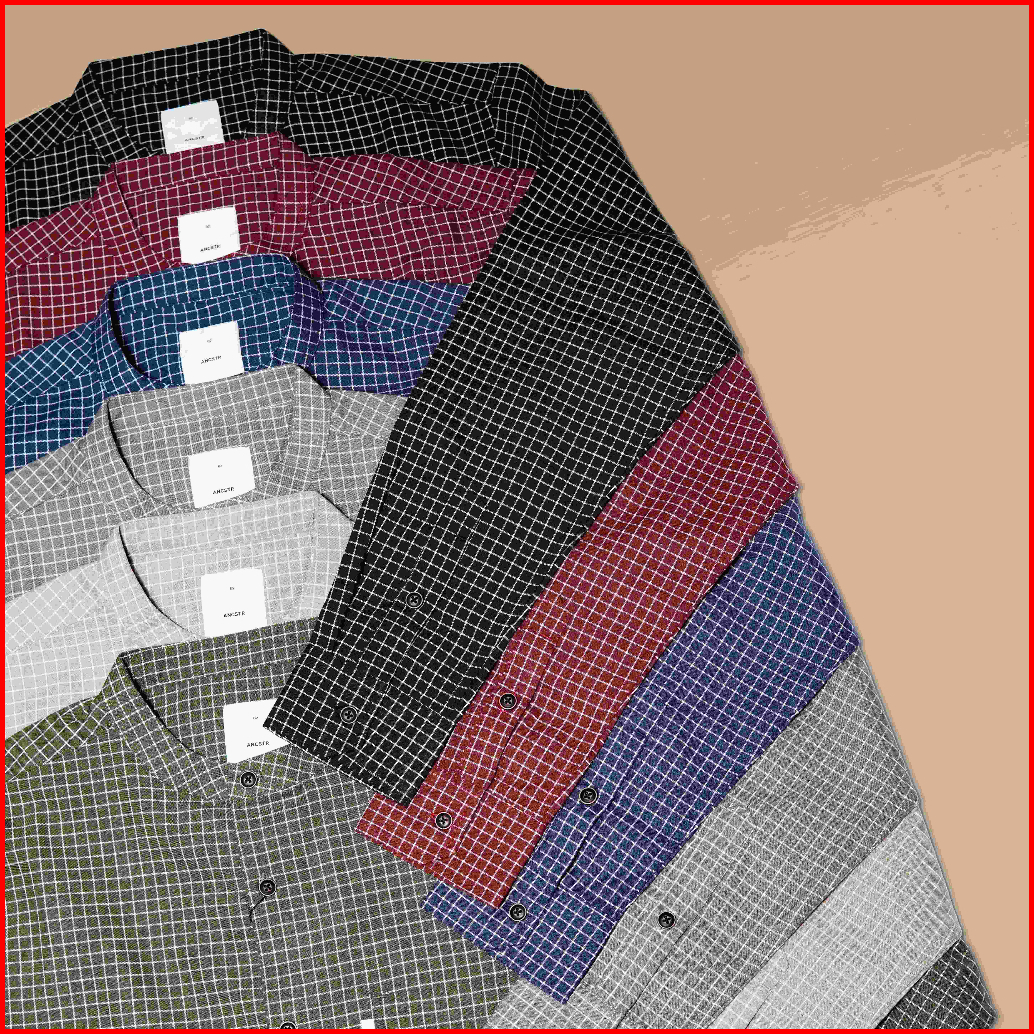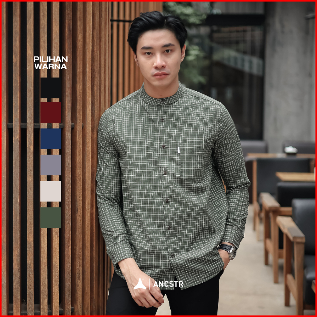 Ancstr Kemeja Shanghai Motif Kotak Pria Lengan Panjang Oxford - Square Line