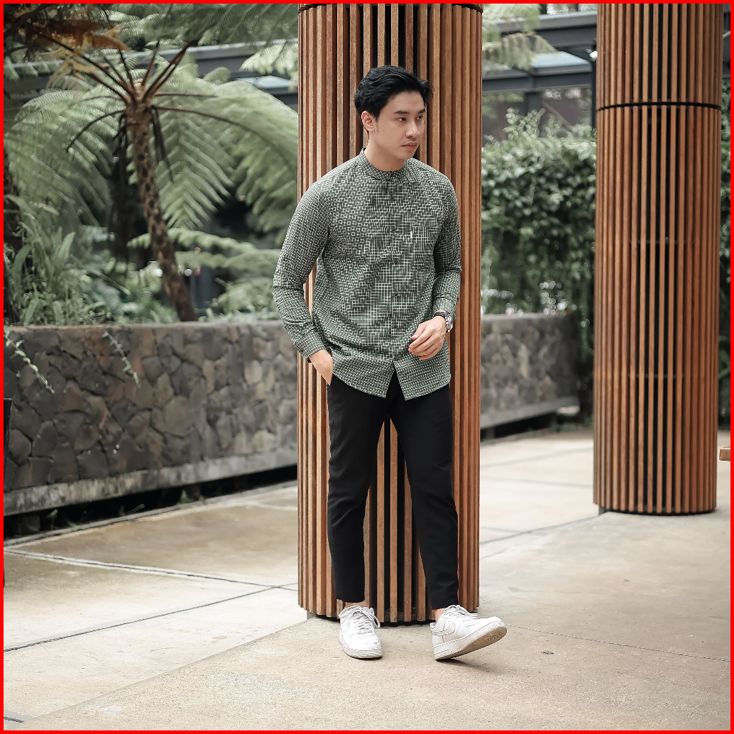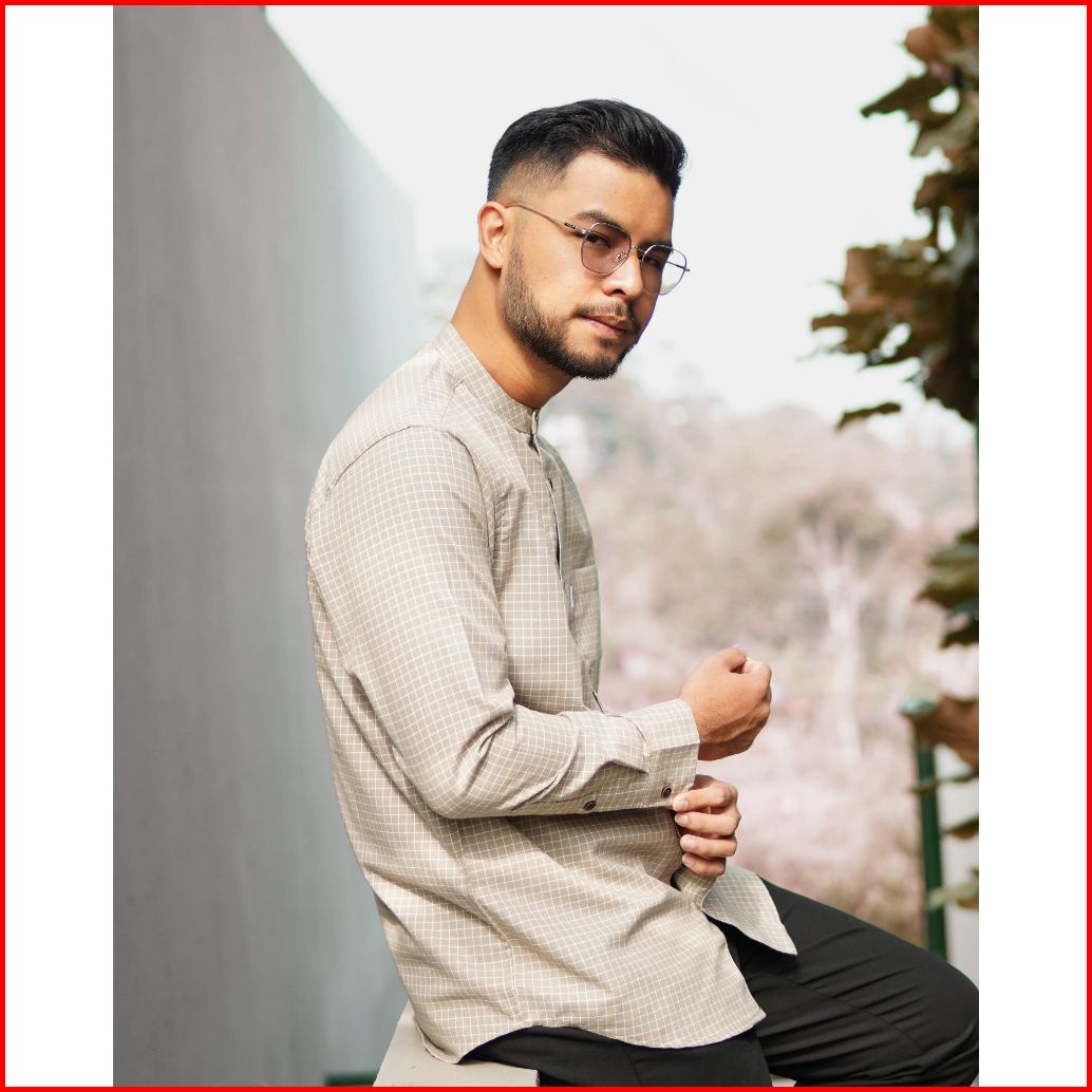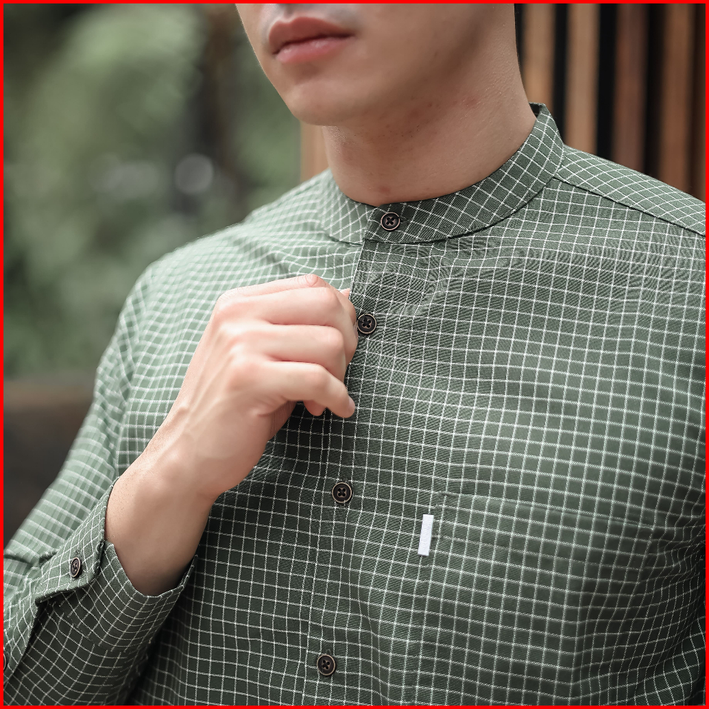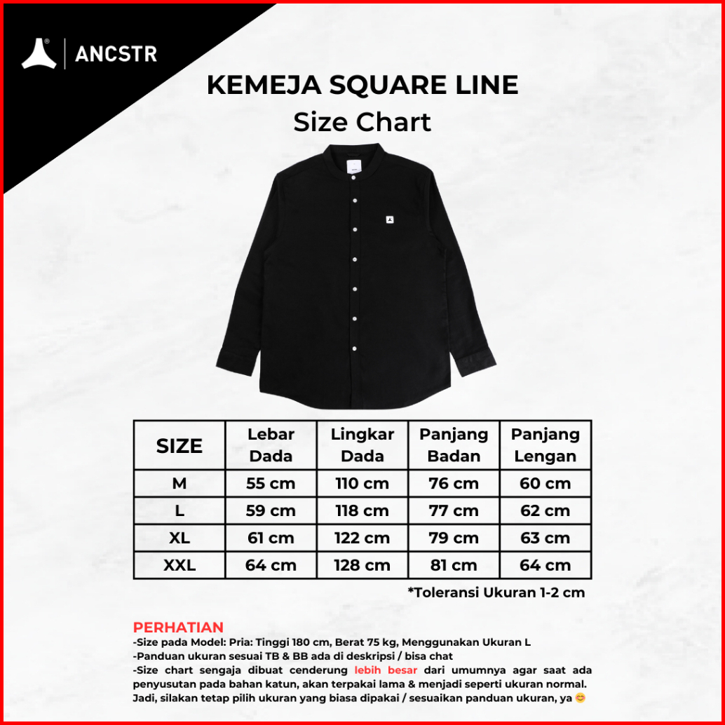 Ancstr Kemeja Shanghai Motif Kotak Pria Lengan Panjang Oxford - Square Line