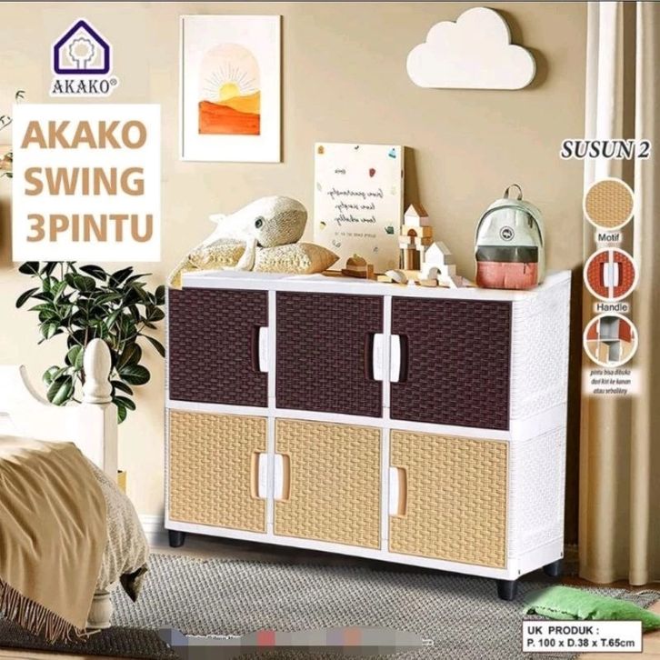 AKAKO - Lemari Pakaian Plastik SWING FANCY 3 Pintu Jumbo Motif Rotan Susun 2, 3, 4 & 5