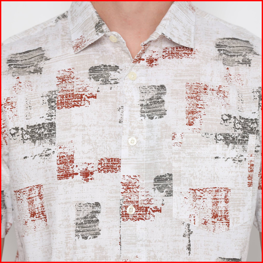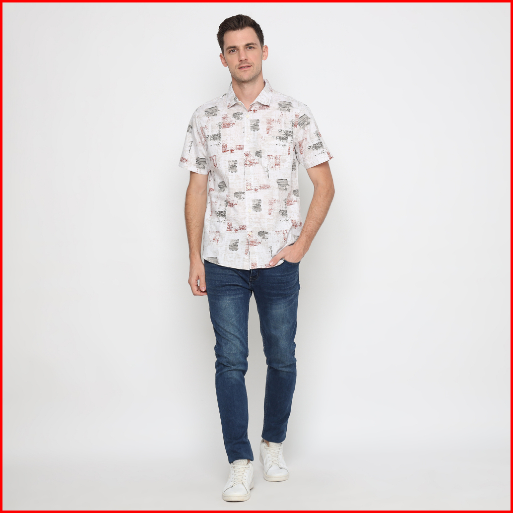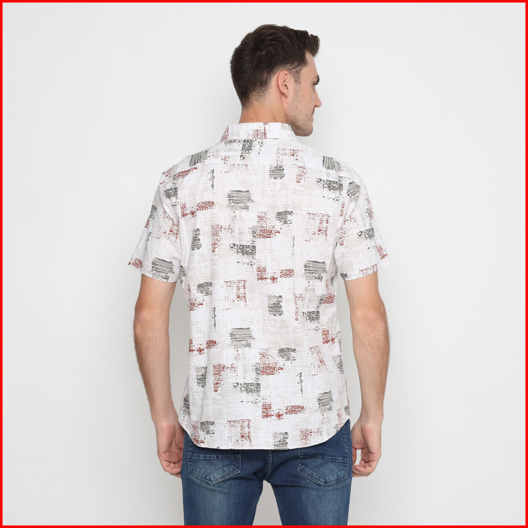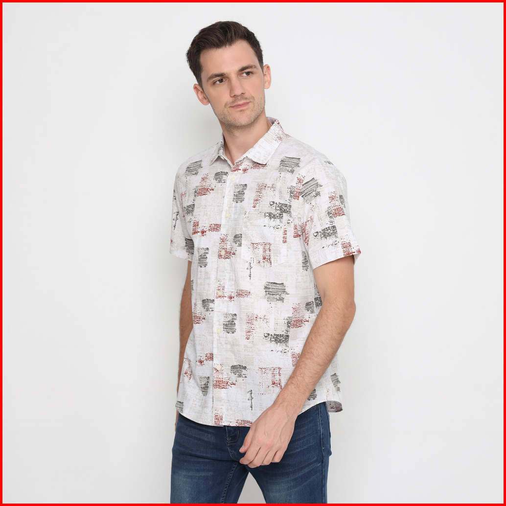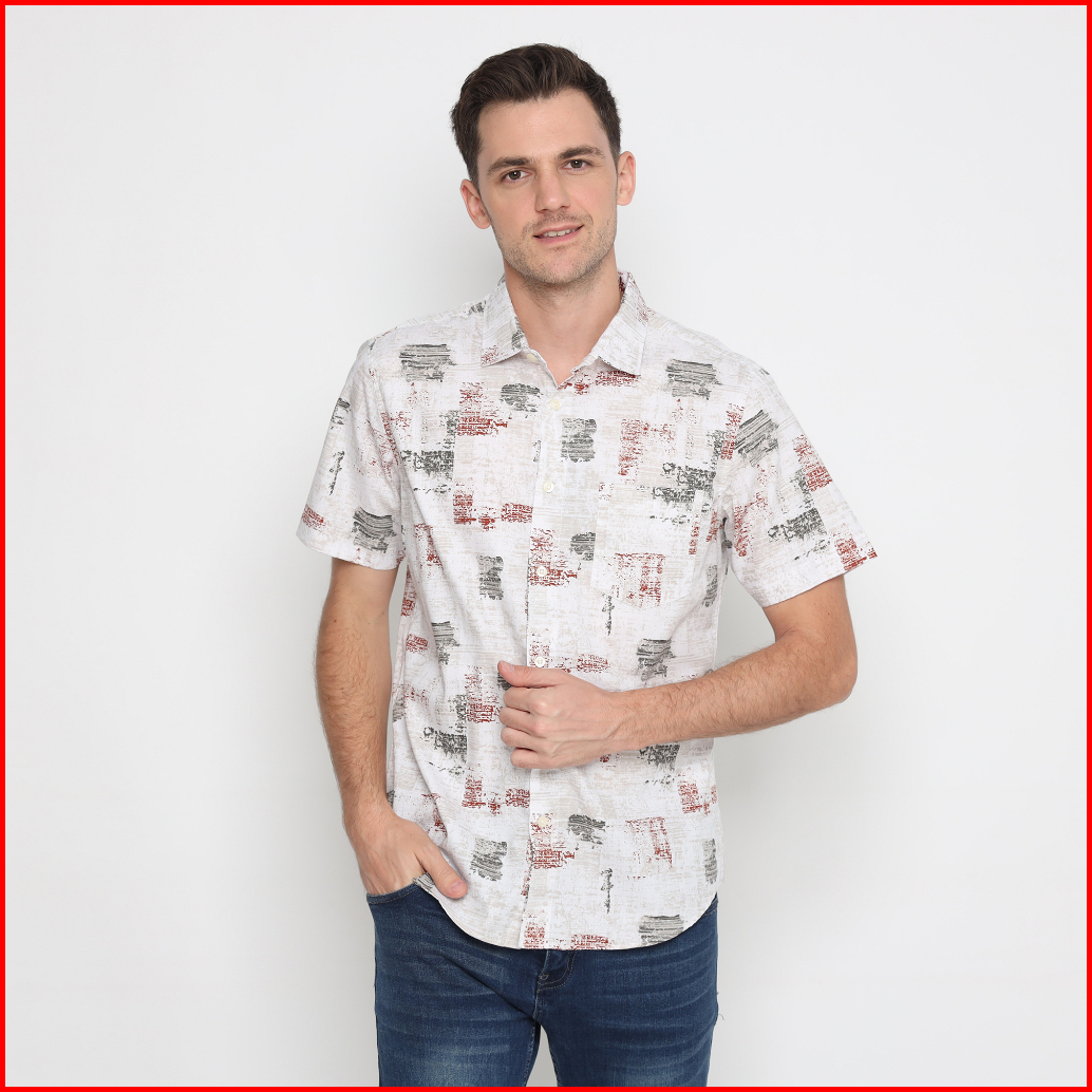 Platini Kemeja Motif Print Pria Lengan Pendek Katun Merah 73412