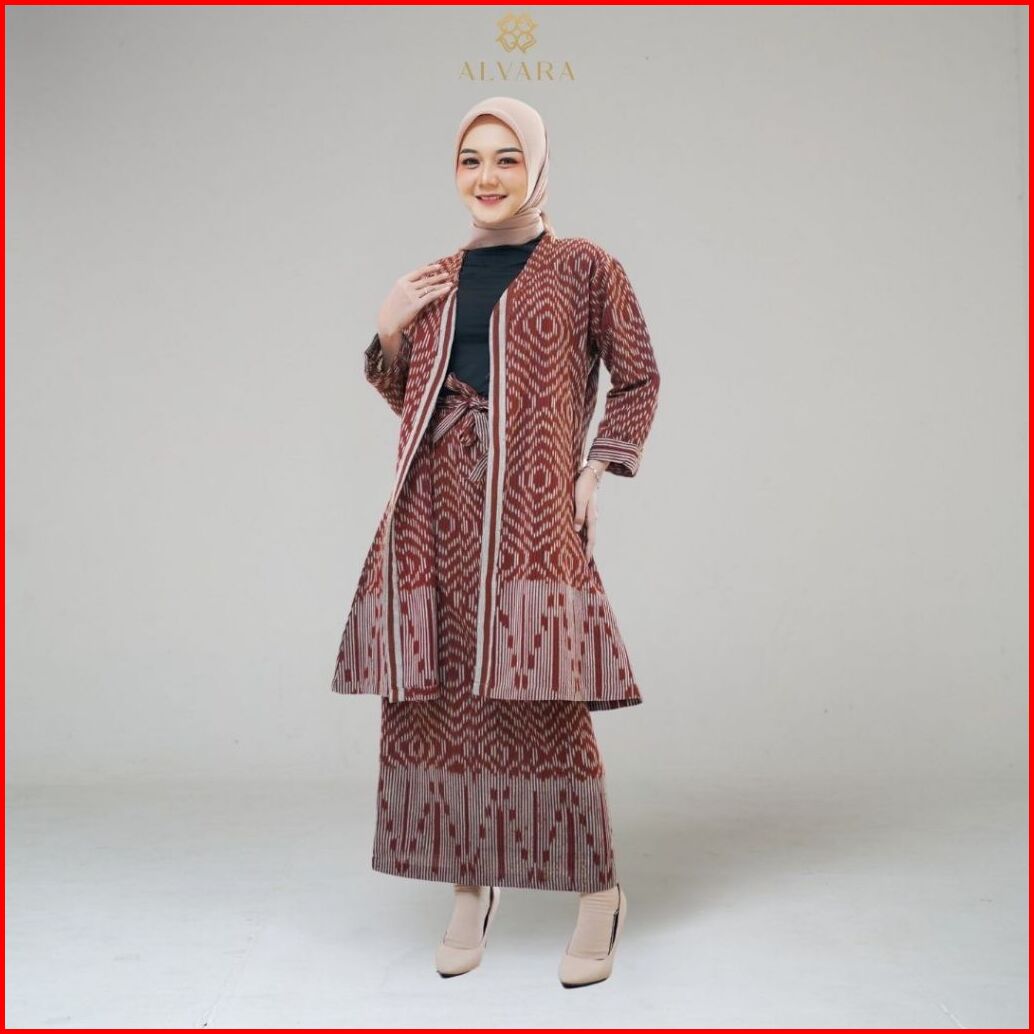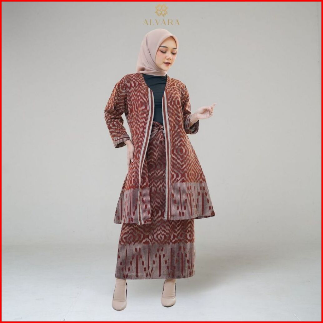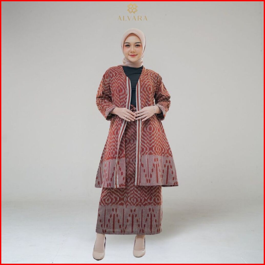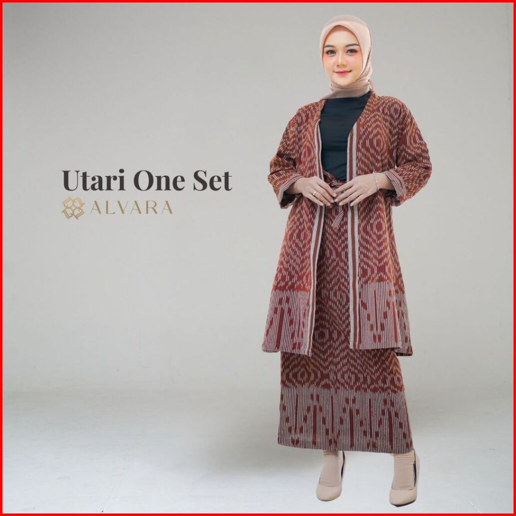 Alvara Utari One Set Wanita Kekinian Setelan Rok Dress Kondangan Gamis Batik Wanita Big Size Jumbo