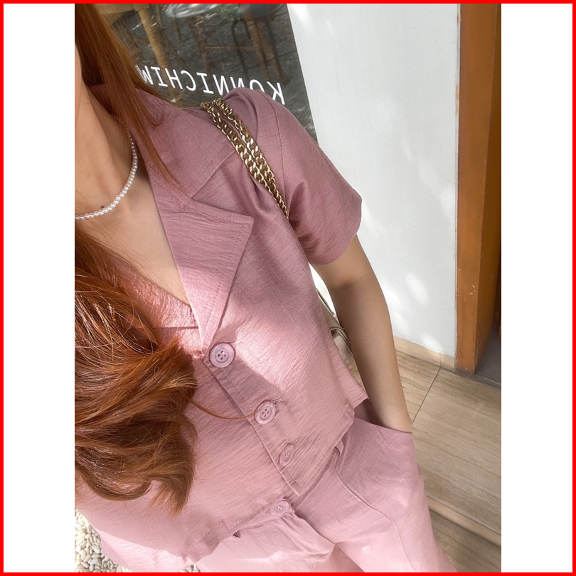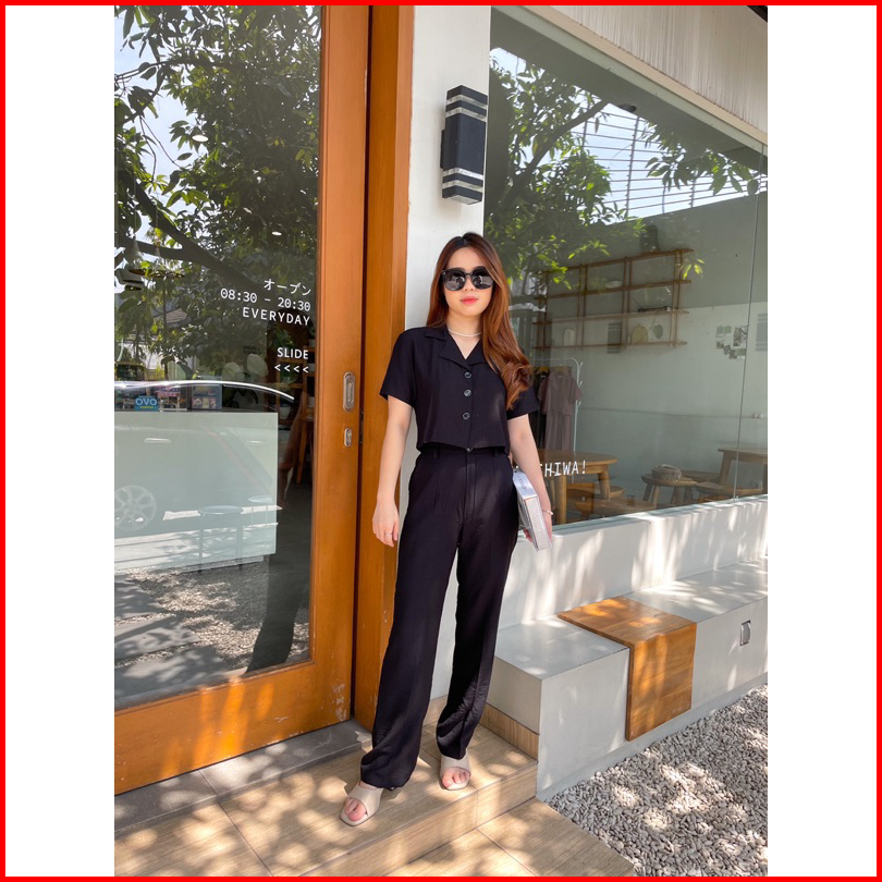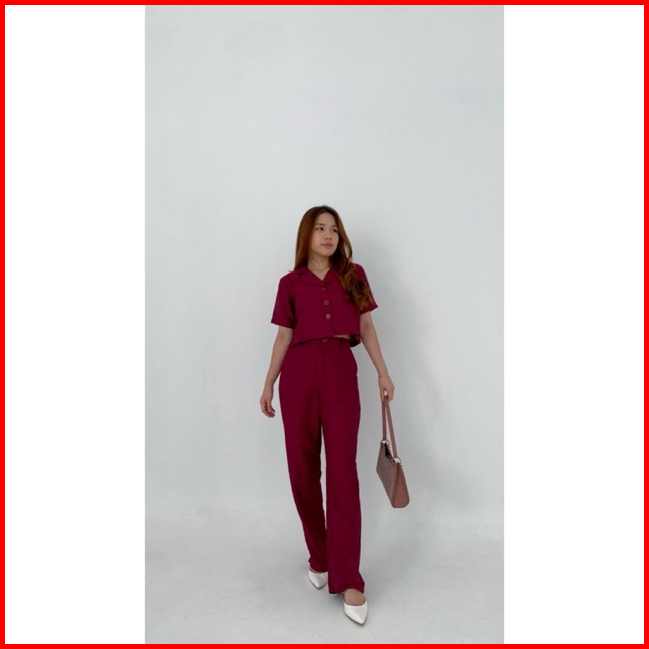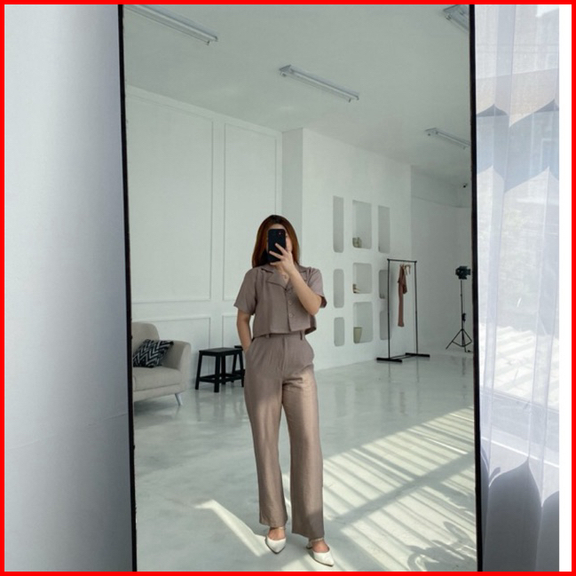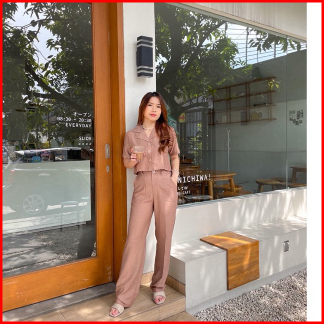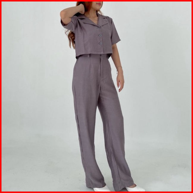 Sale Last Stock 145k Setelan Kemeja Wanita Baju Setelan Wanita Celana Panjang Wanita Linen Crop Top Lengan Pendek