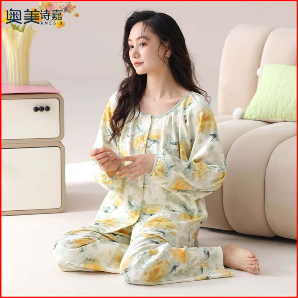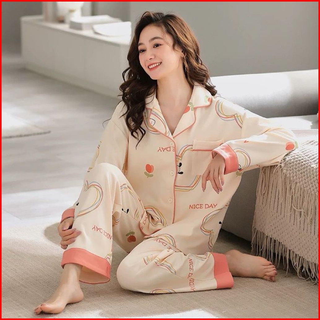 Ready Stock Setelan Baju Tidur Cotton Import Wanita Premium Babydoll Wanita Set Pajamas Kancing Pp Baju Tidur