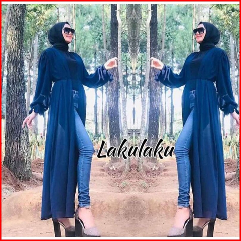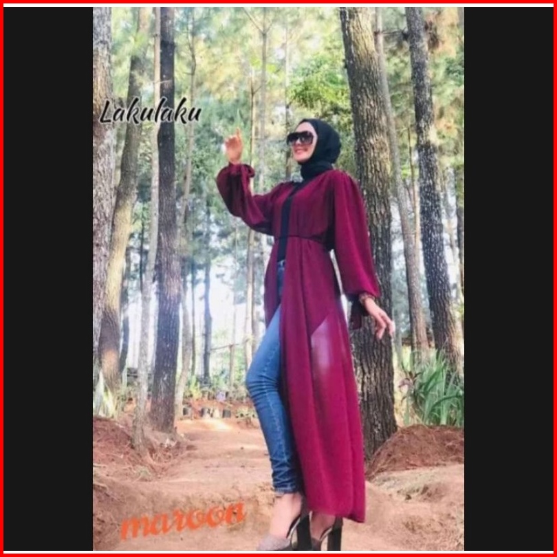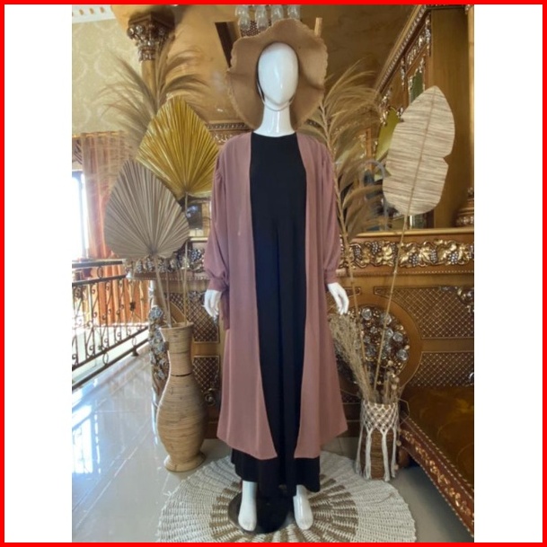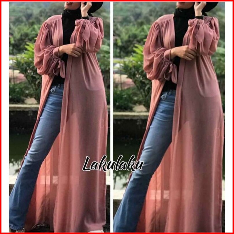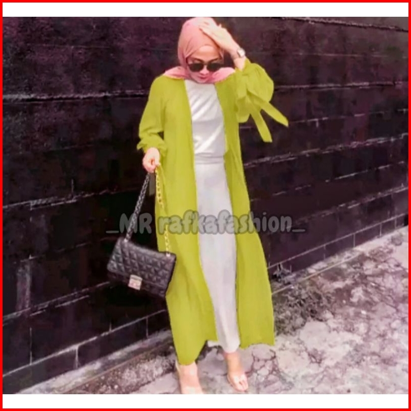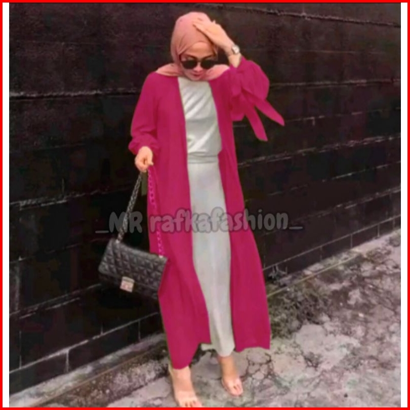 Mahira Long Outher Lengan Balon Cardigan Outher Wanita Matt Ceruty Babydoll Long Outher Kekinian Best Seller