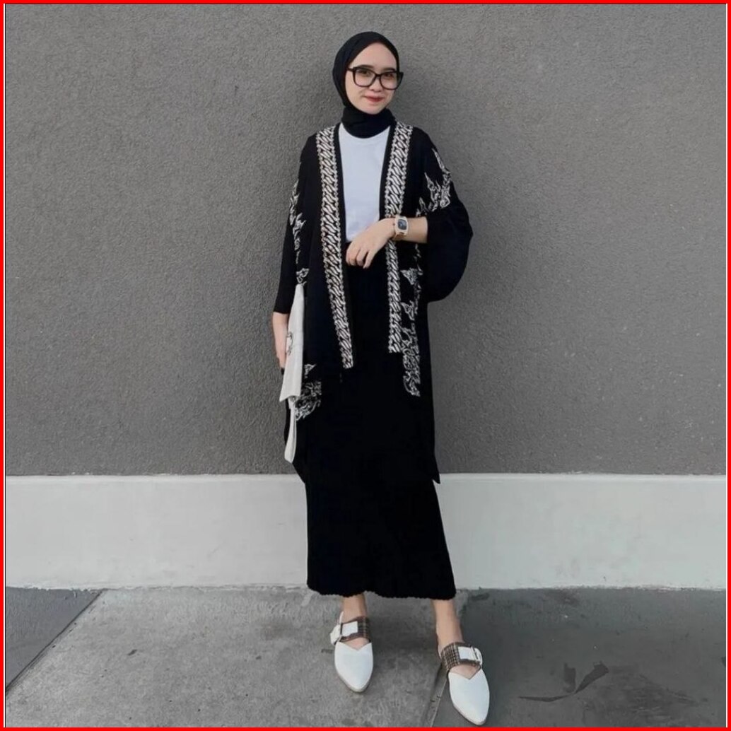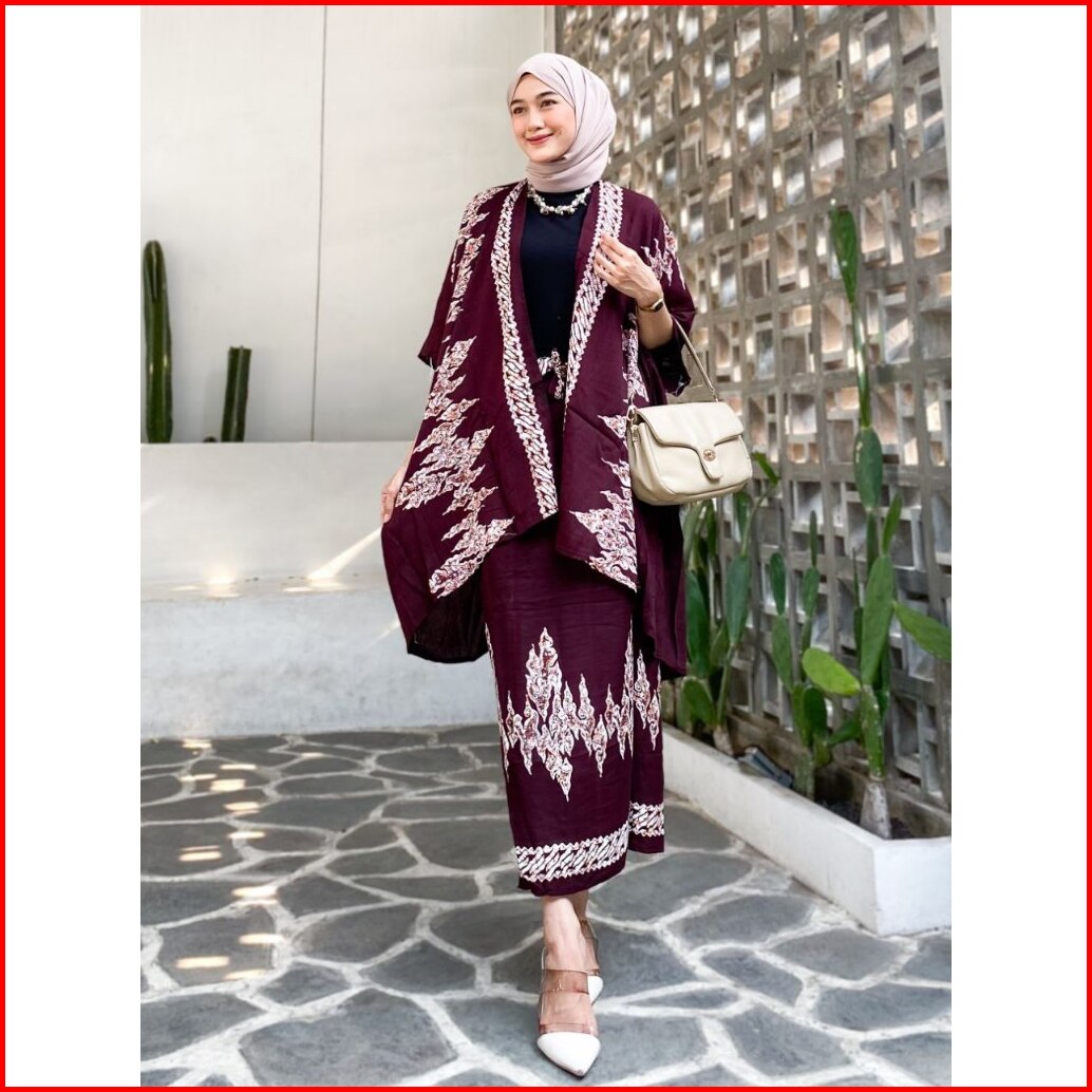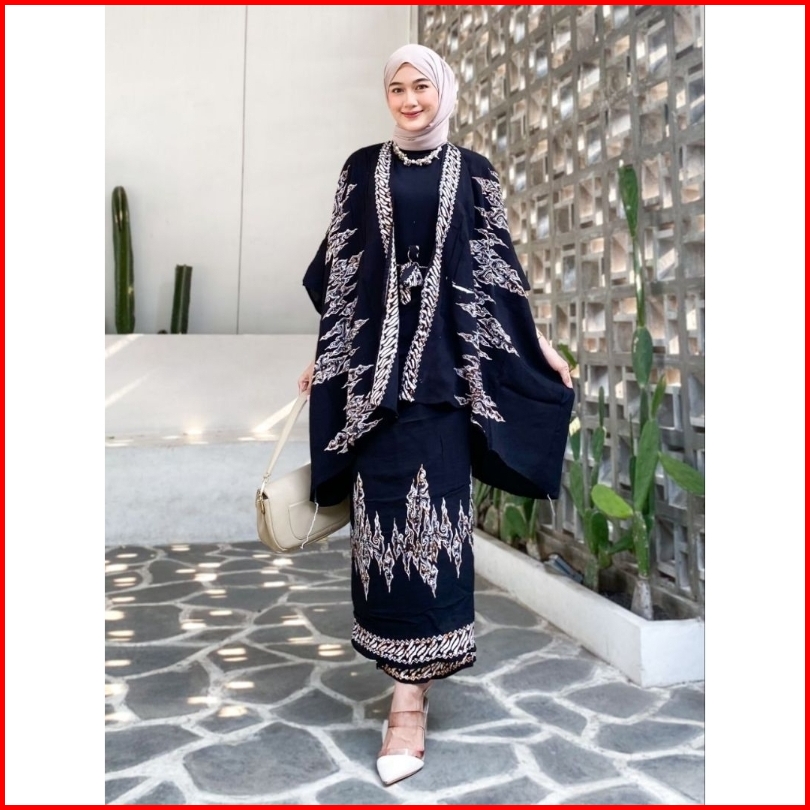 Grosir Klamby - Outfit Kondangan Modern One Set Kebaya Batik Mega Mendung Outer Rok Lilit