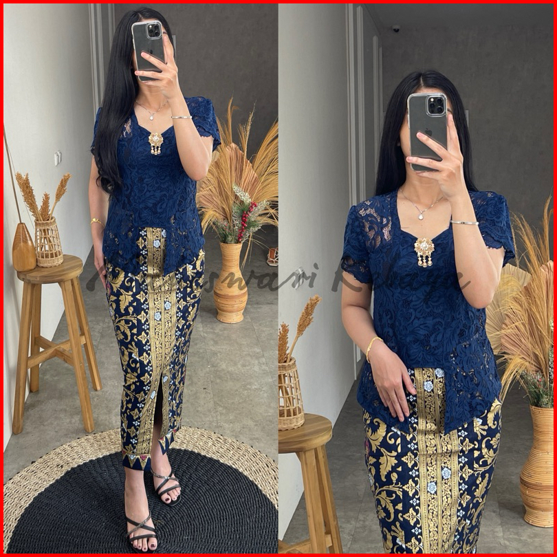 Kebaya Bali Set Brukat Lilit Navy