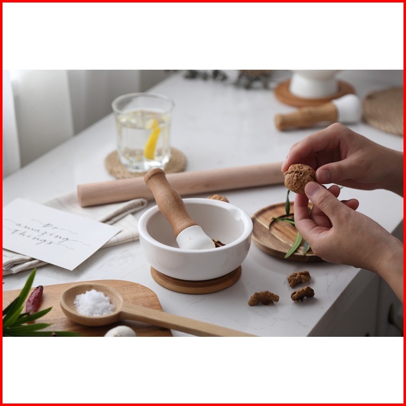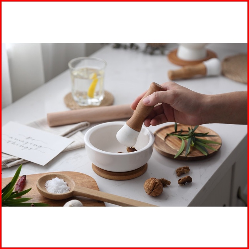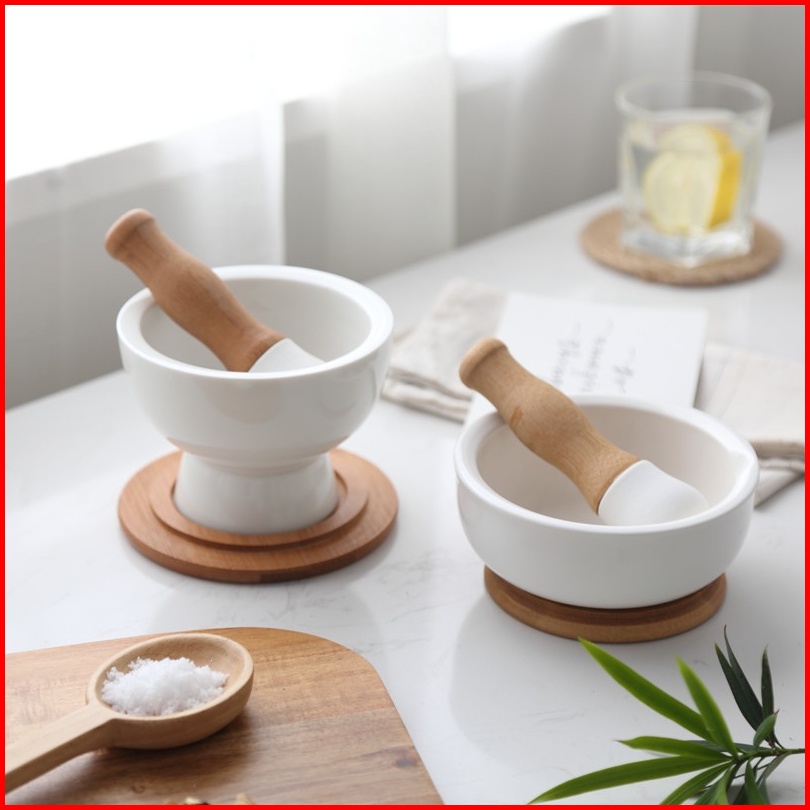 Ceramic Mortar And Pastle Tinggi Size Ulekan Keramik Cobek Keramik Alu Estetic Nordic Style Bahan Keramik