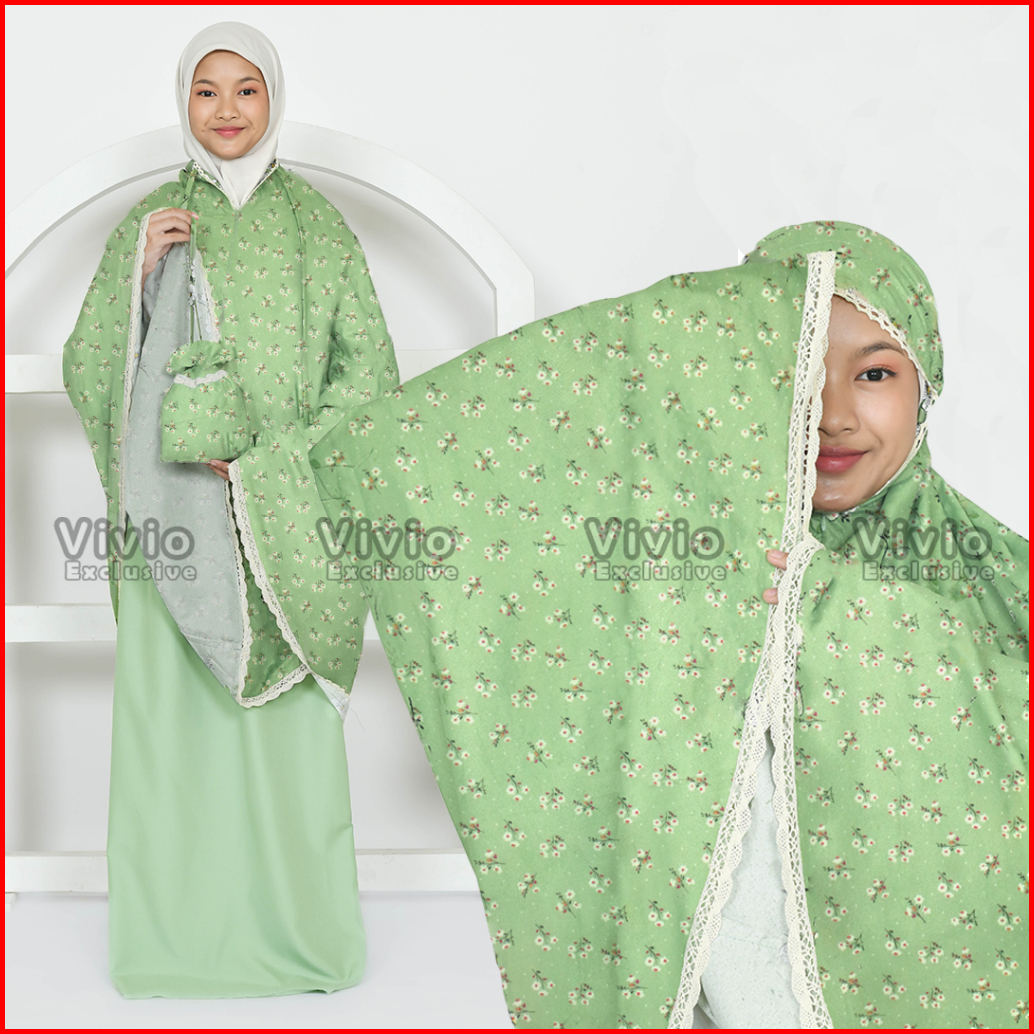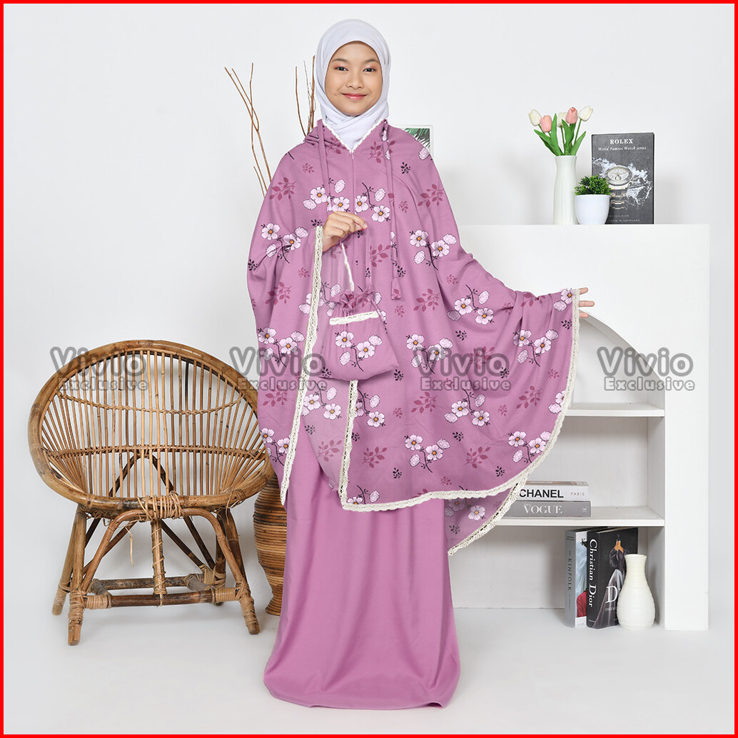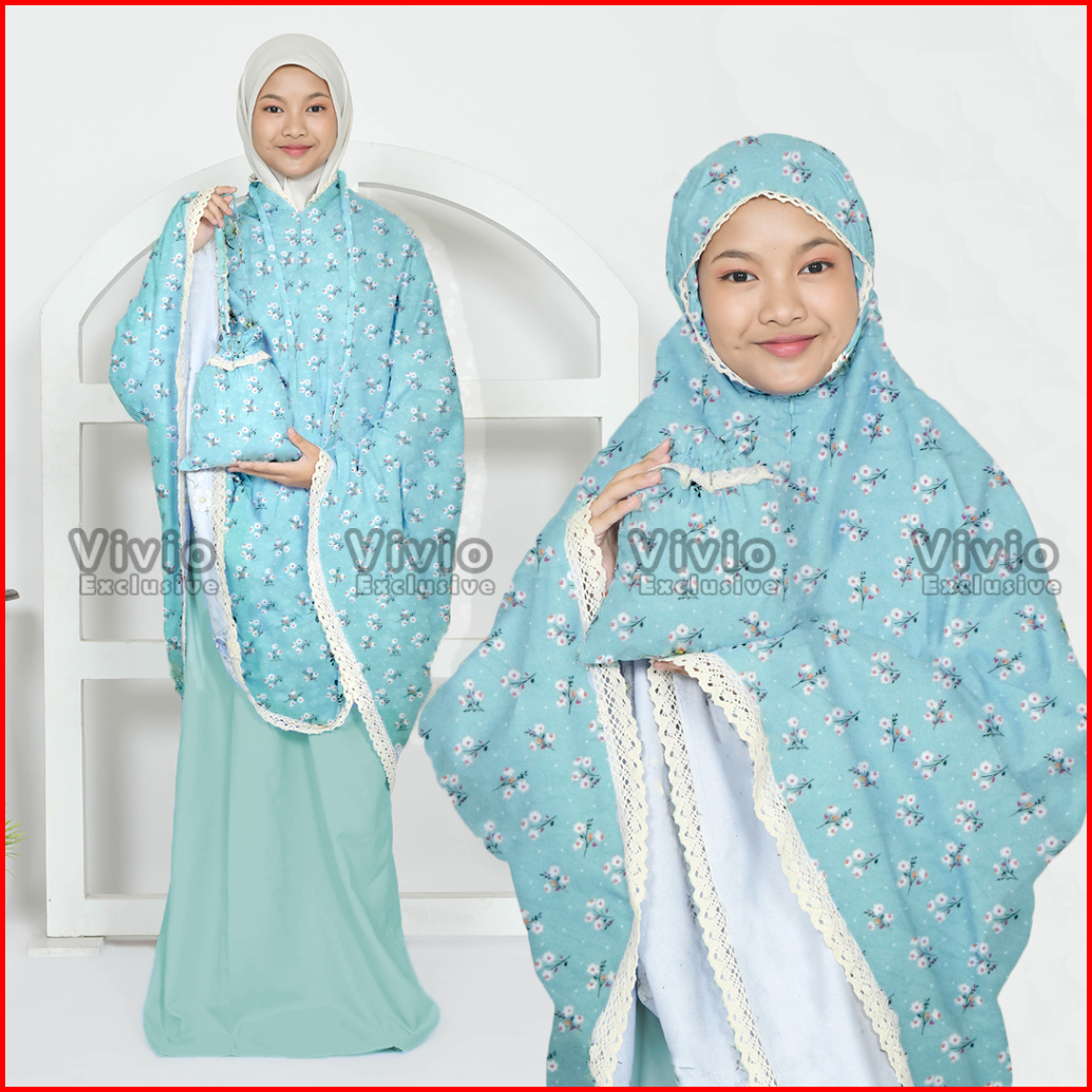 Mukena Anak Tanggung Traveling Motif Mewah Mini Pouch 2 In 1 Resleting Dagu Katun Premium Usia 7 S D 15 Tahun Aisha Seri