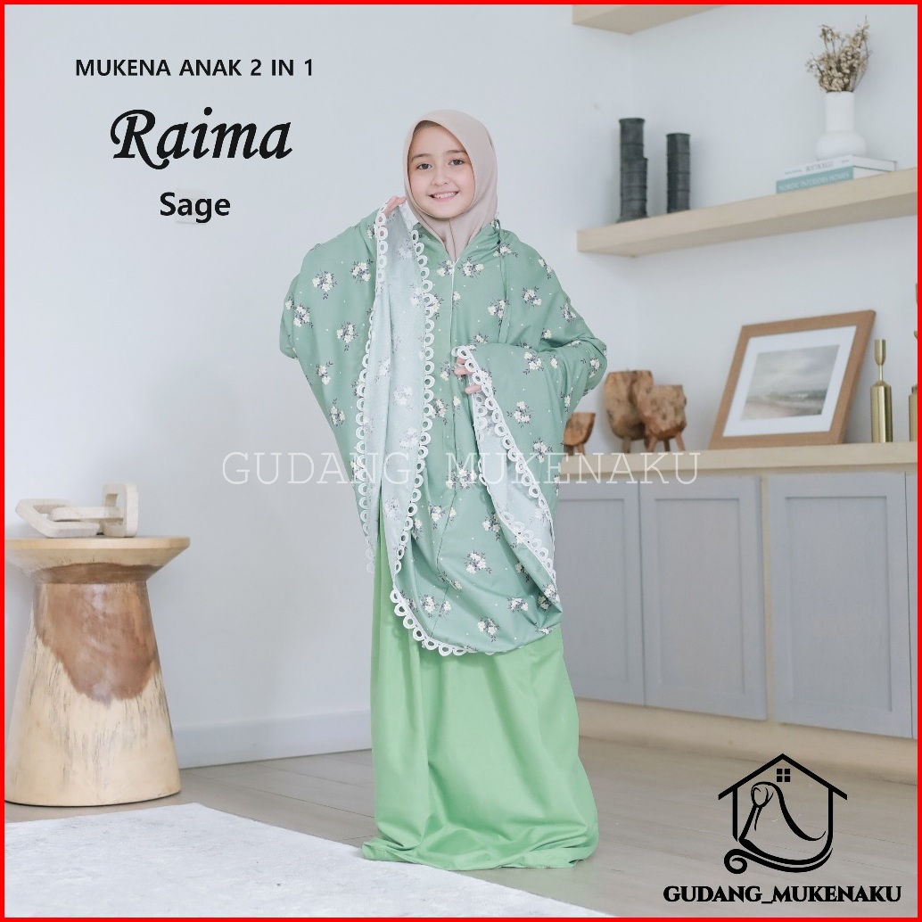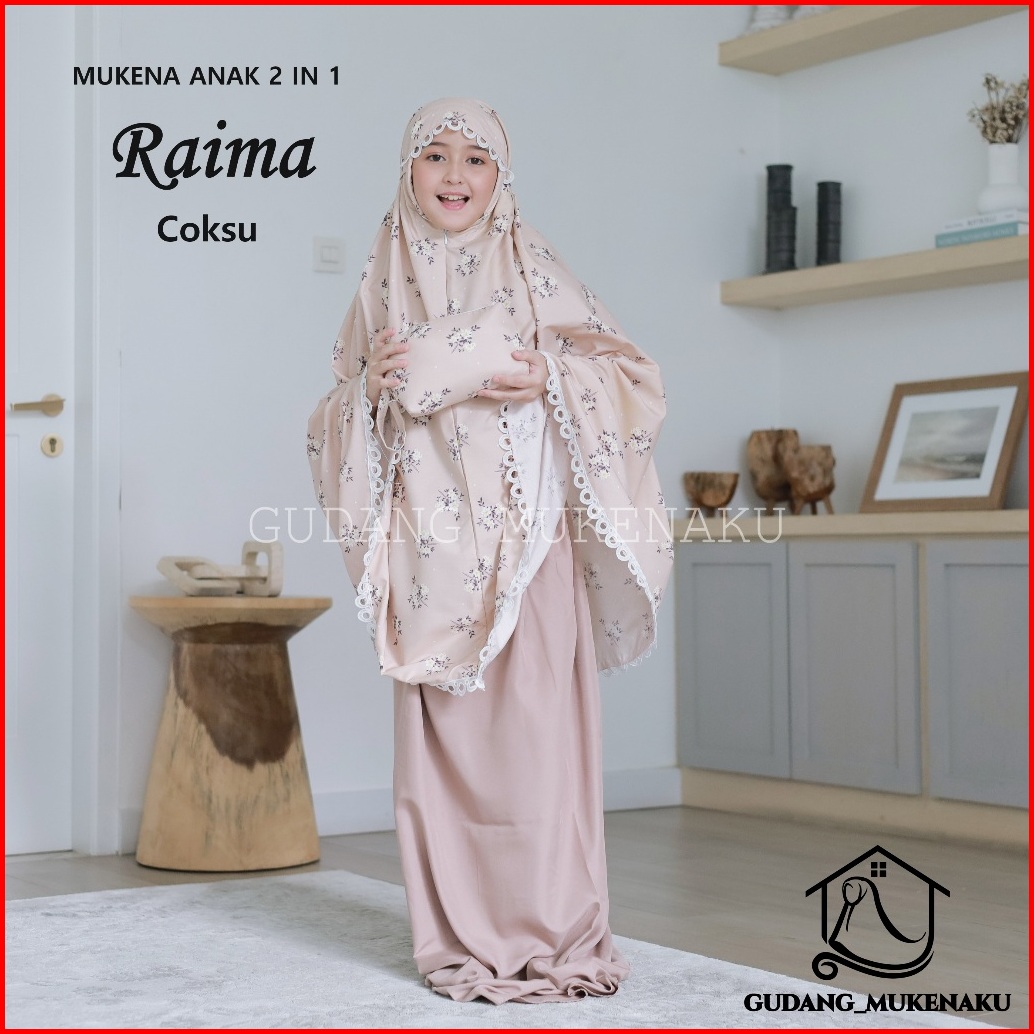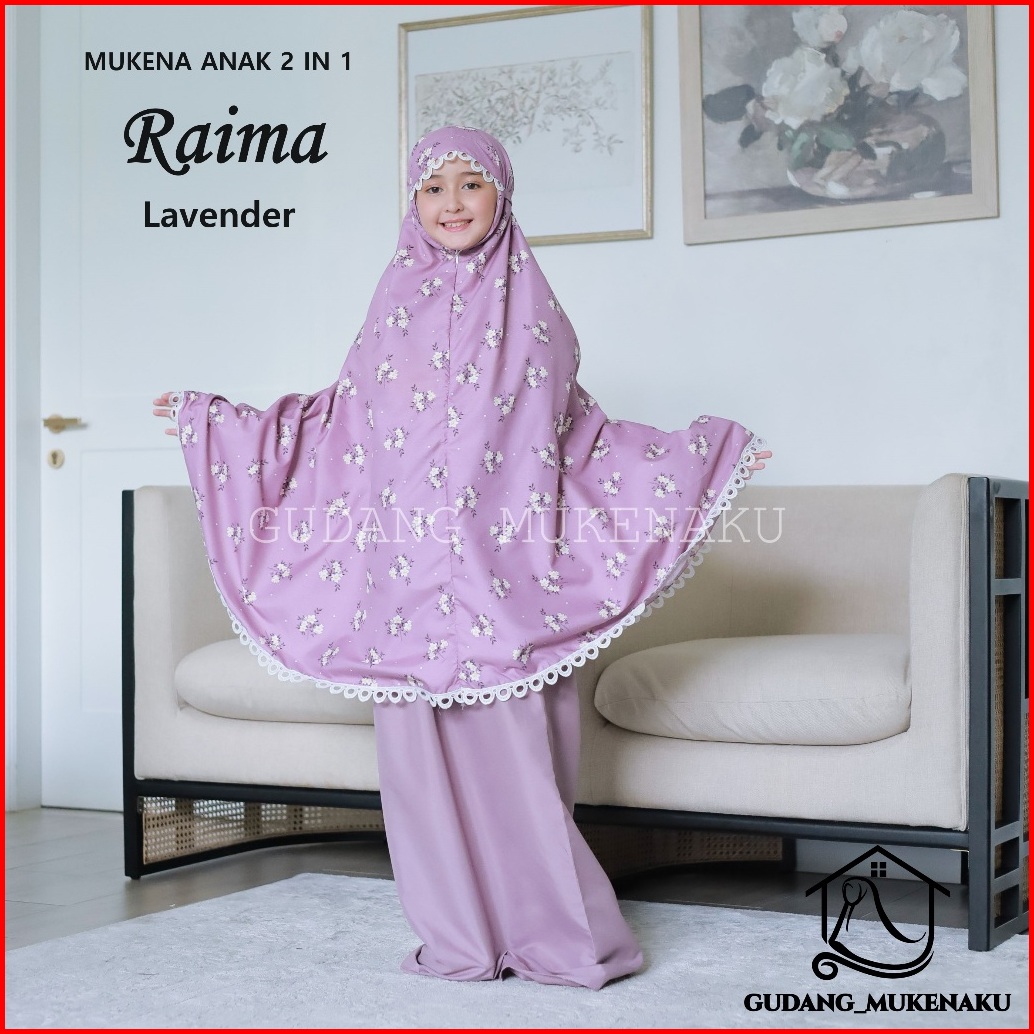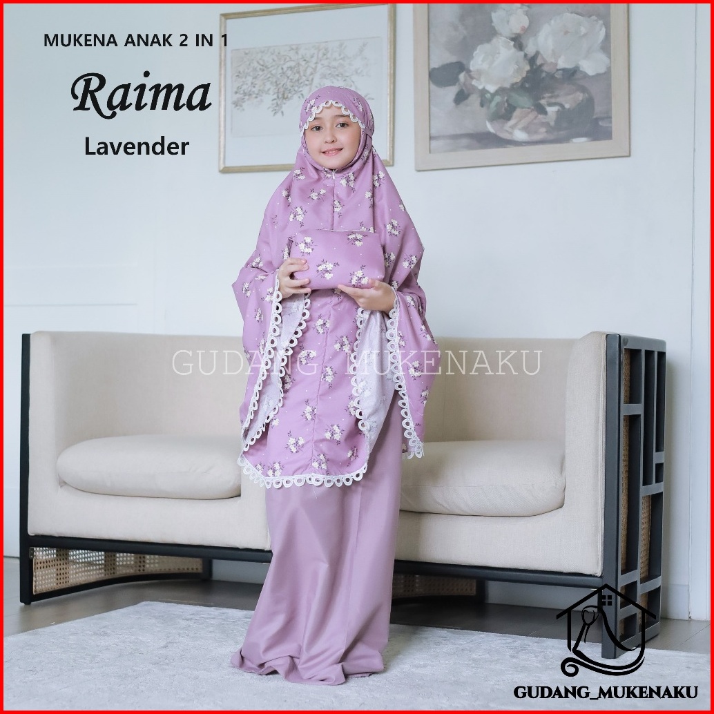 Mukena Anak Tanggung Raima Bahan Katun Mikro Travel 2 In 1 Renda Mewah Cantik By Gudang Mukenaku