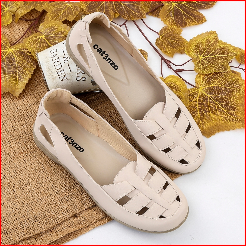 Catenzo Sepatu Flat Slip On Wanita Casual Daily Synthetic Leather Cream Ks 810