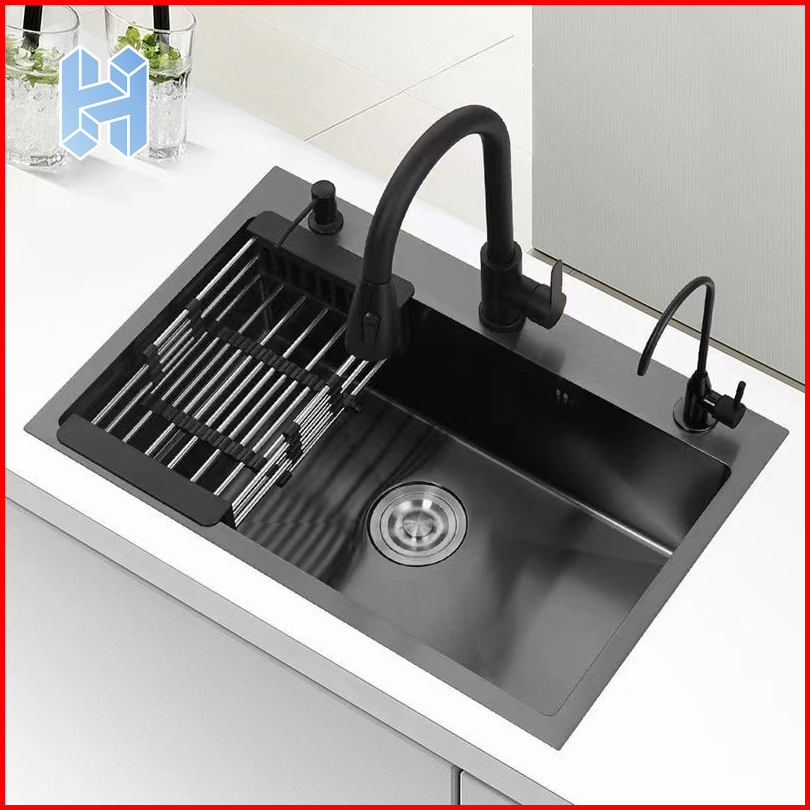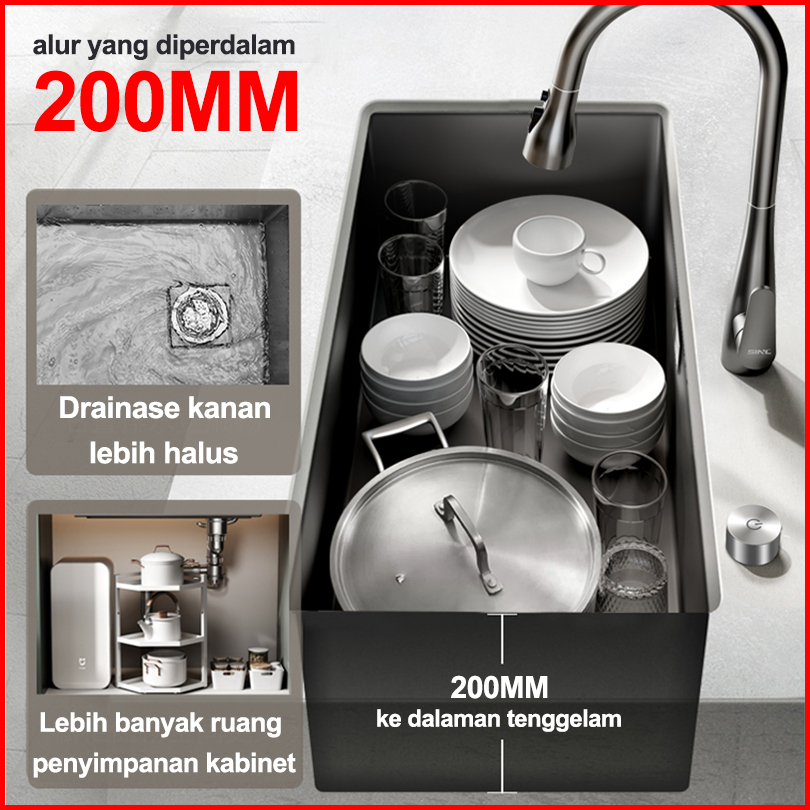 Paket Kitchen Sink Hitam Perak Wastafel Cuci Piring Stainless Sink Cuci Piring Dengan Keran Tarik