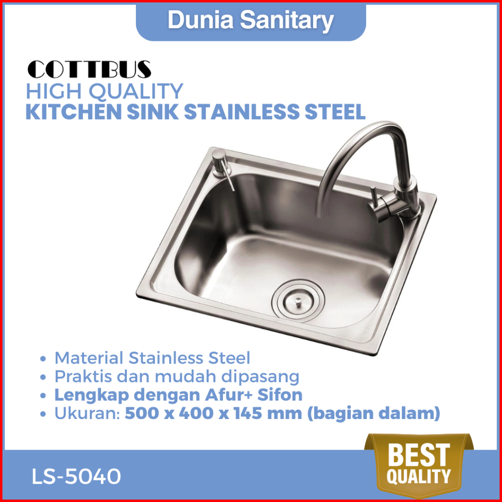Cottbus Wastafel Cuci Piring 1 Lubang Stainless Steel Ukuran 50x40 Afur Siphon Selang Lubang Keran Air Dan Sabun Ls-5040