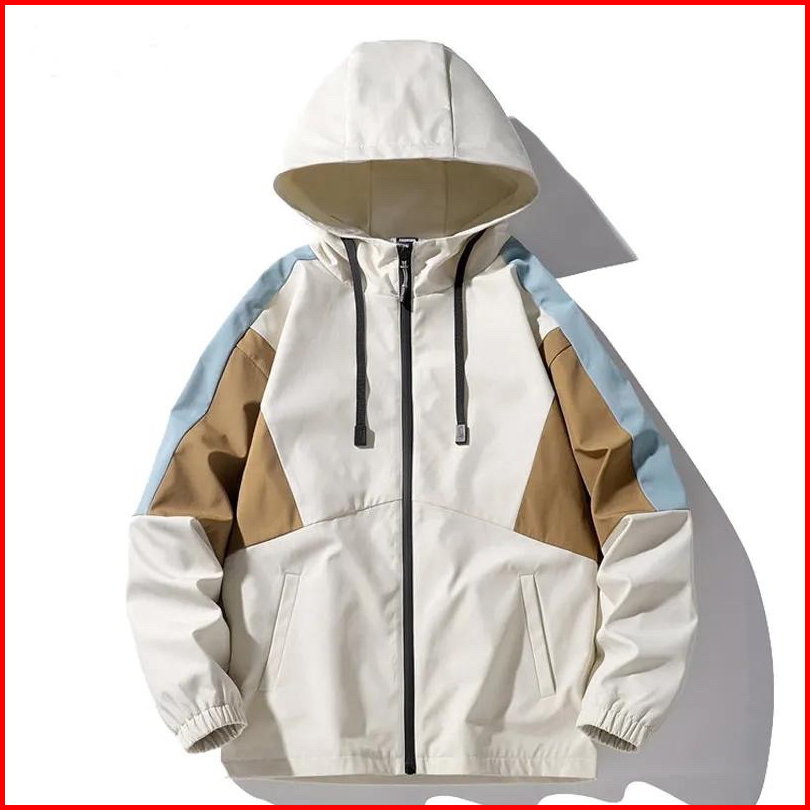 Streetwear Jaket Pria Windbreaker Hoodie Stylish Polyester Tebal