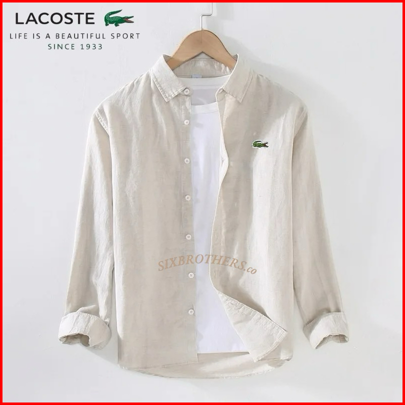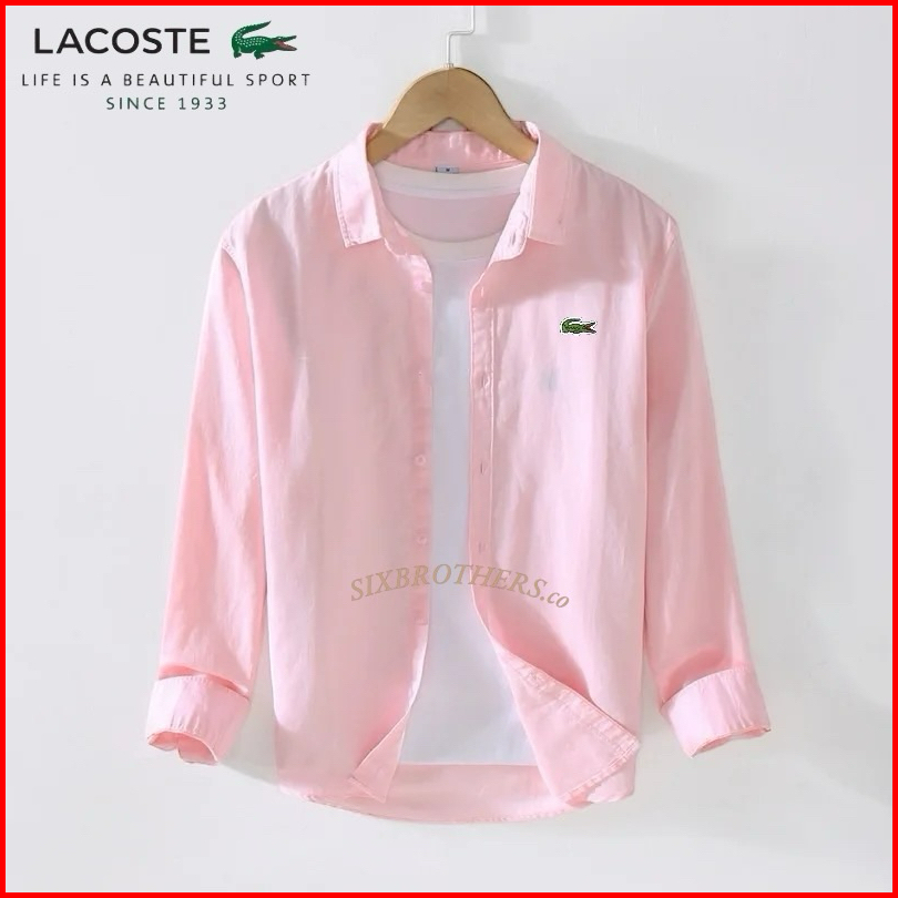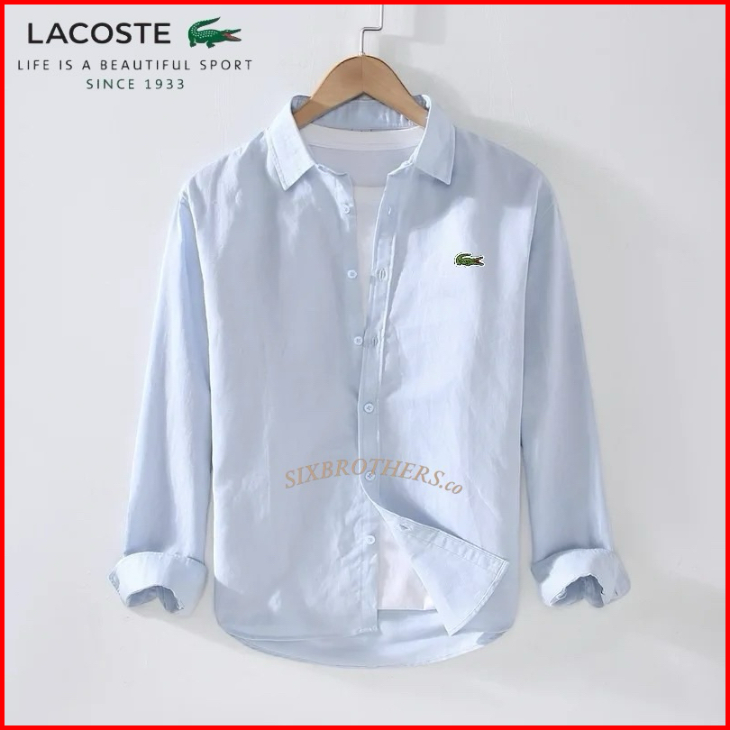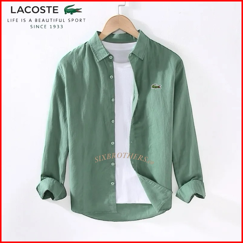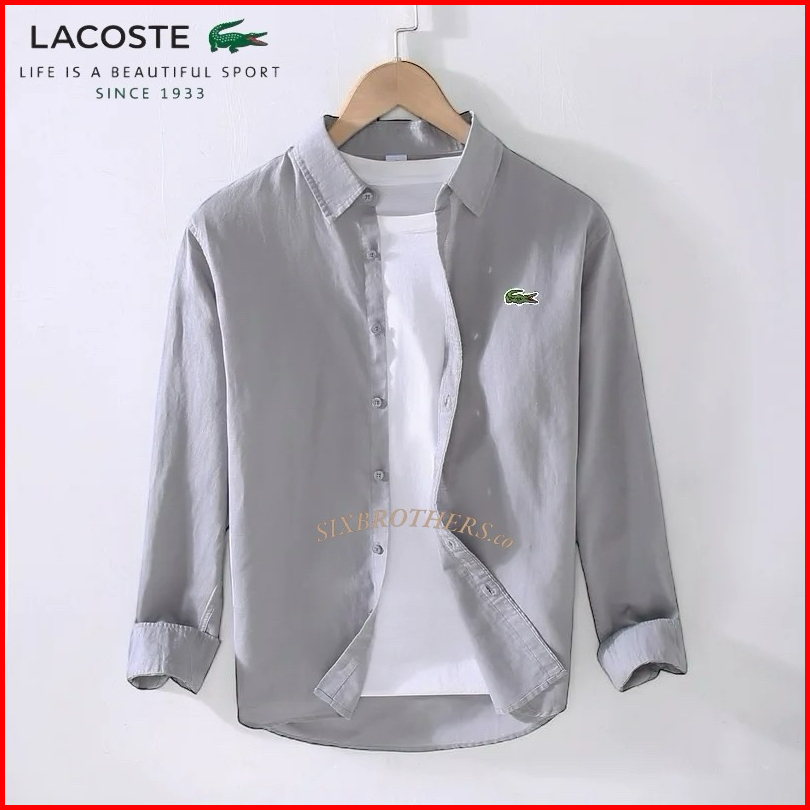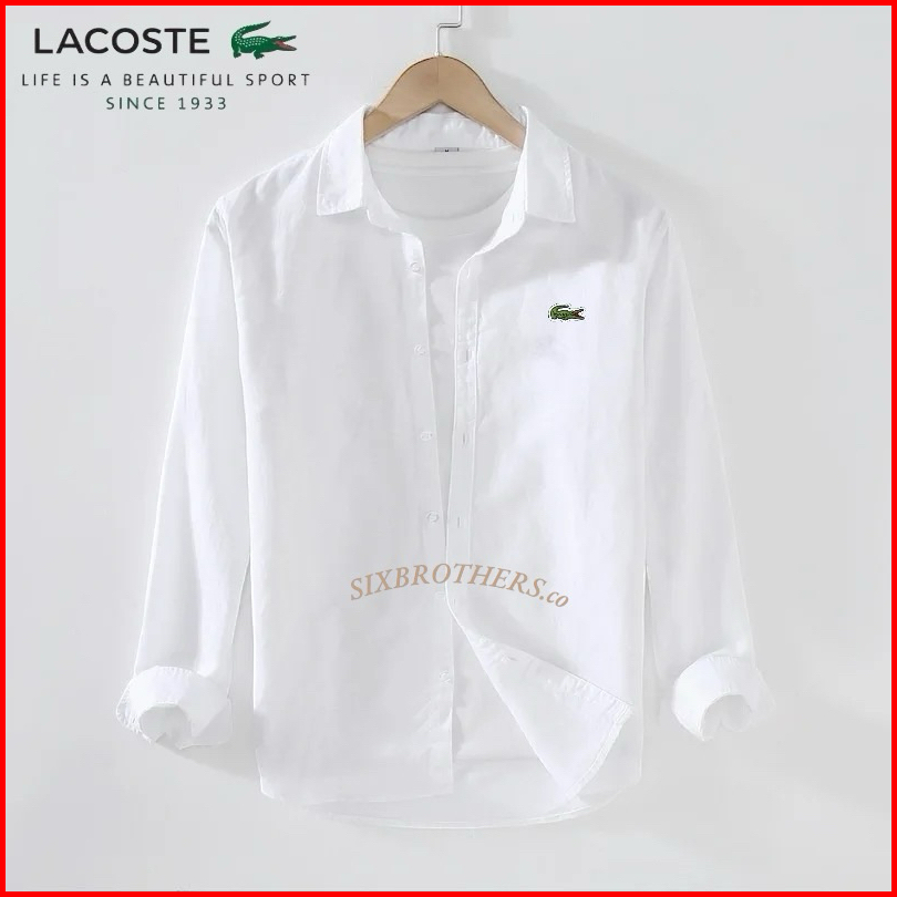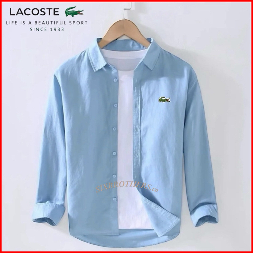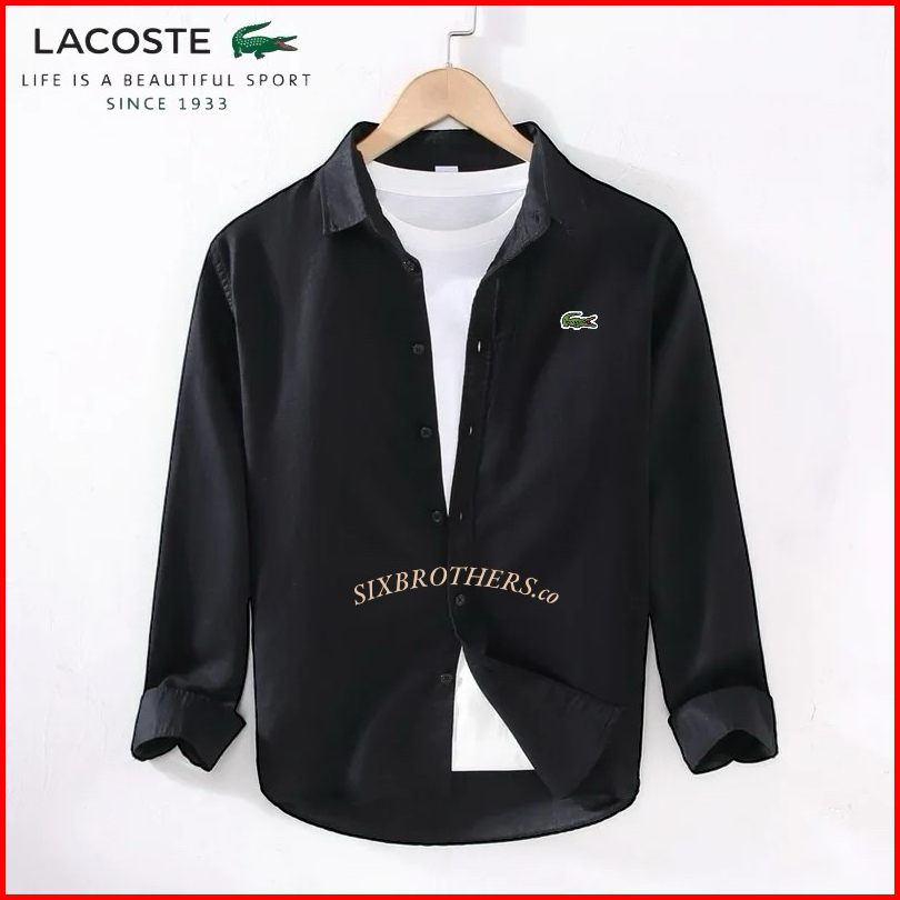 Kemeja Casual Lengan Panjang Pria L.a.c.o.s.t.e Bordir Bahan 100 Full Katun Promo Terlaris M-4xl