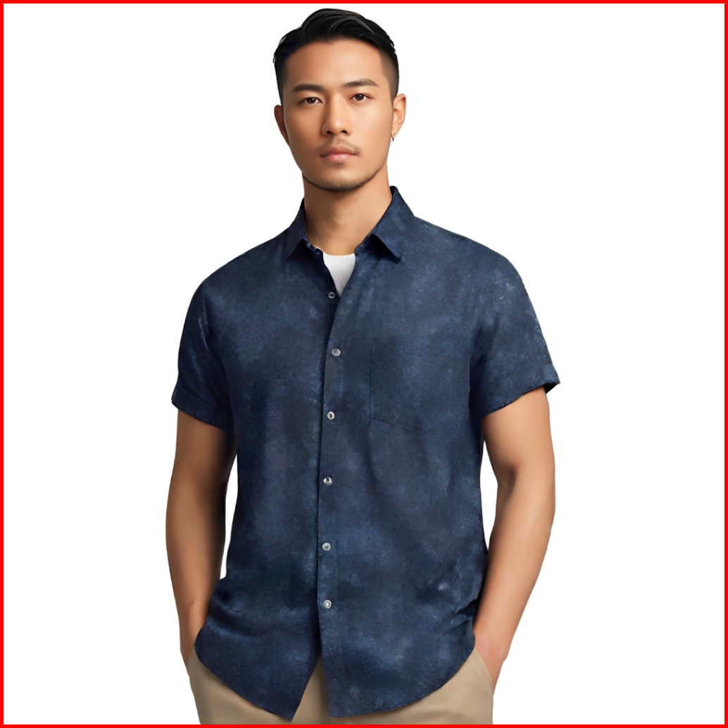 Baju Kemeja Pria Lengan Pendek Motif Terbaru Blue Sharpen