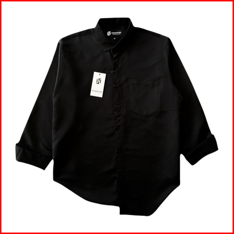 Kemeja Polos Hitam Pria Lengan Panjang Hem Slimfit Casual Formal