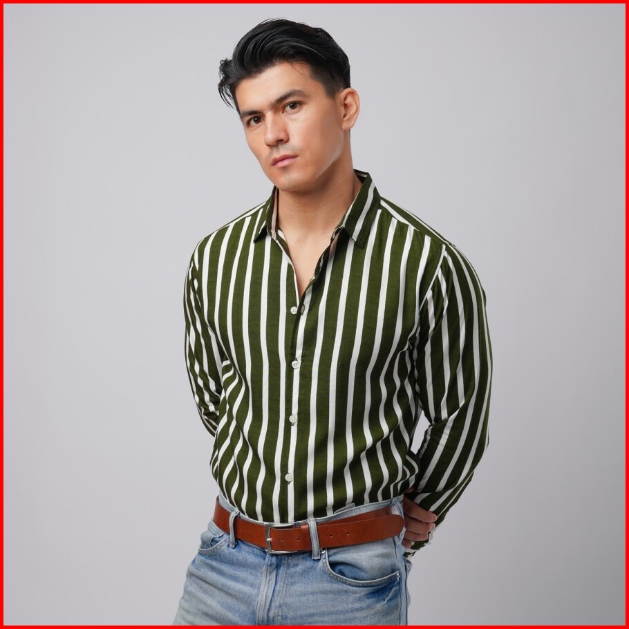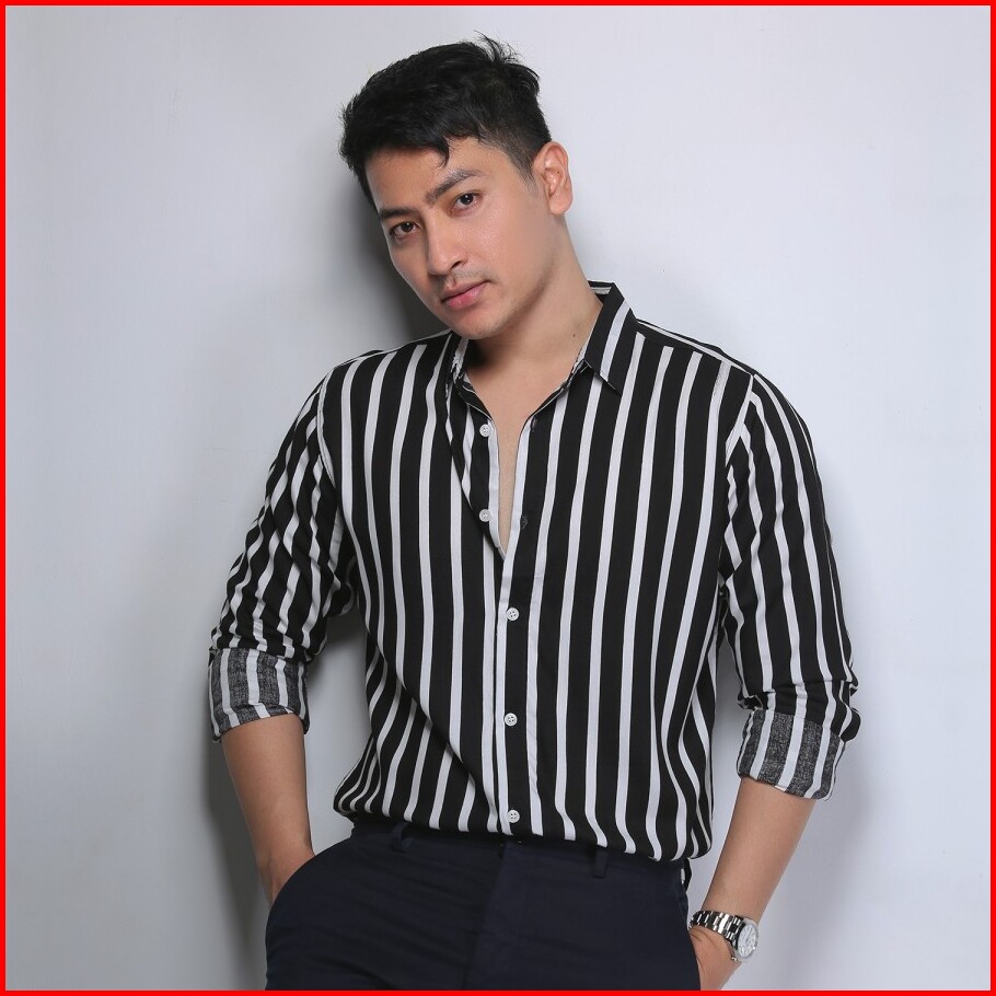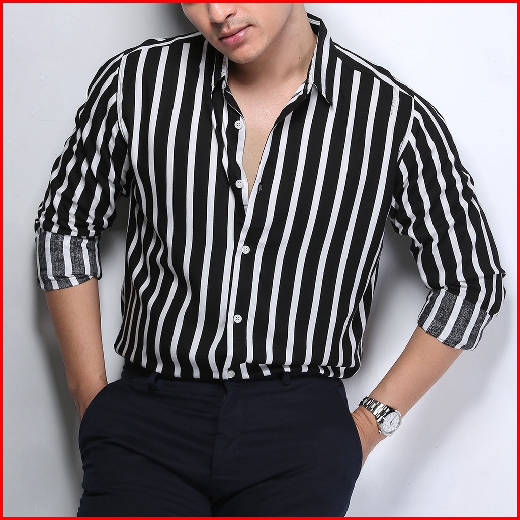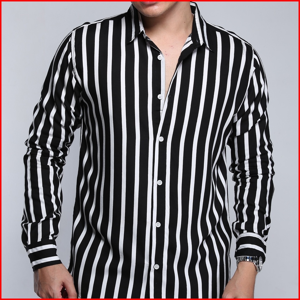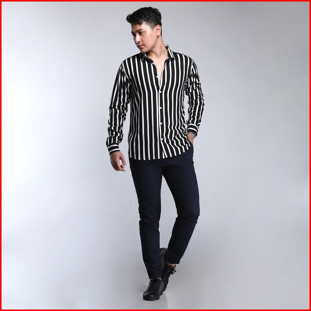 Vengoz Kemeja Pria Slim Fit - Black Stripe Shirt