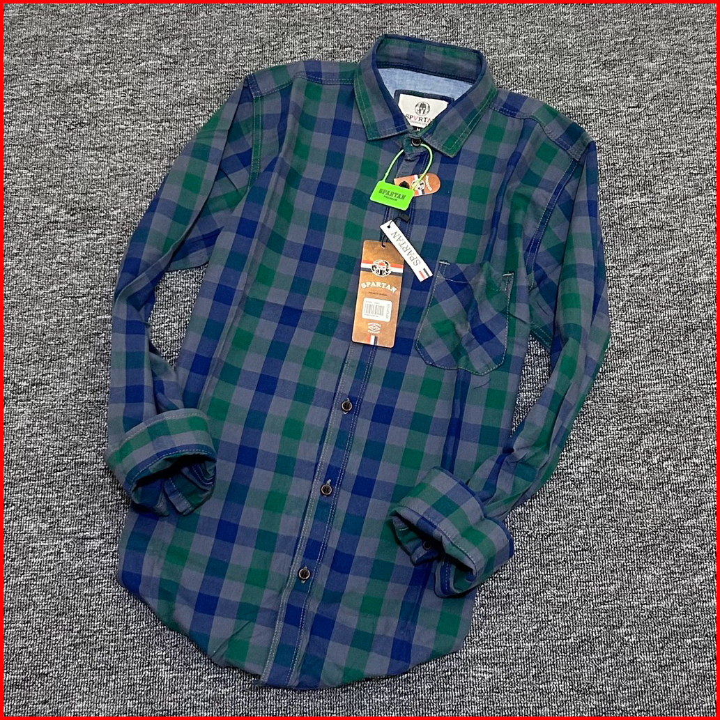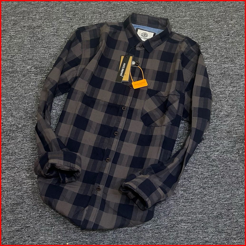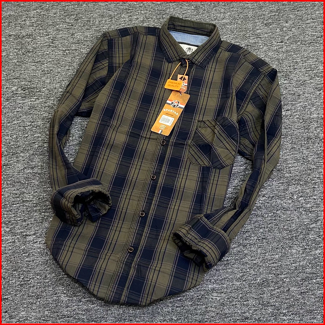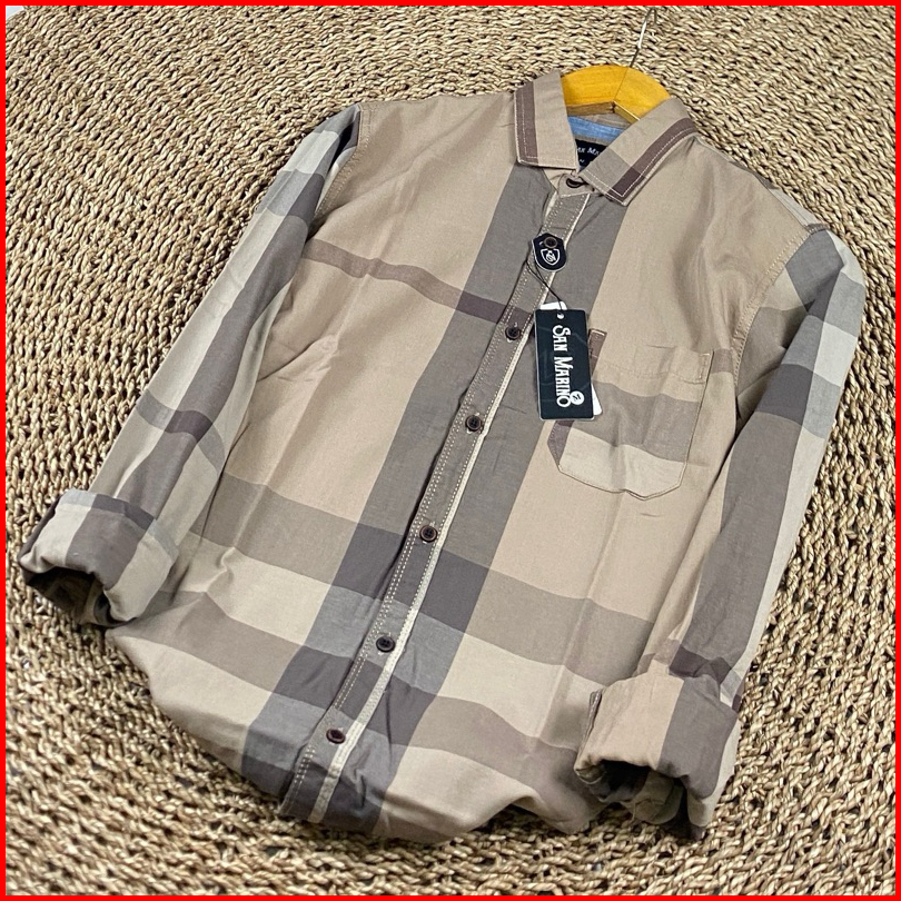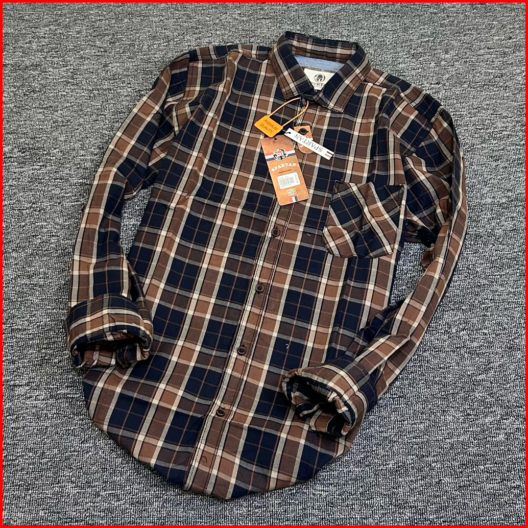 Remoraga Store Kemeja Lengan Panjang Pria Casual Kemeja Long Sleeve Jackbrown Motif Retro Tartan