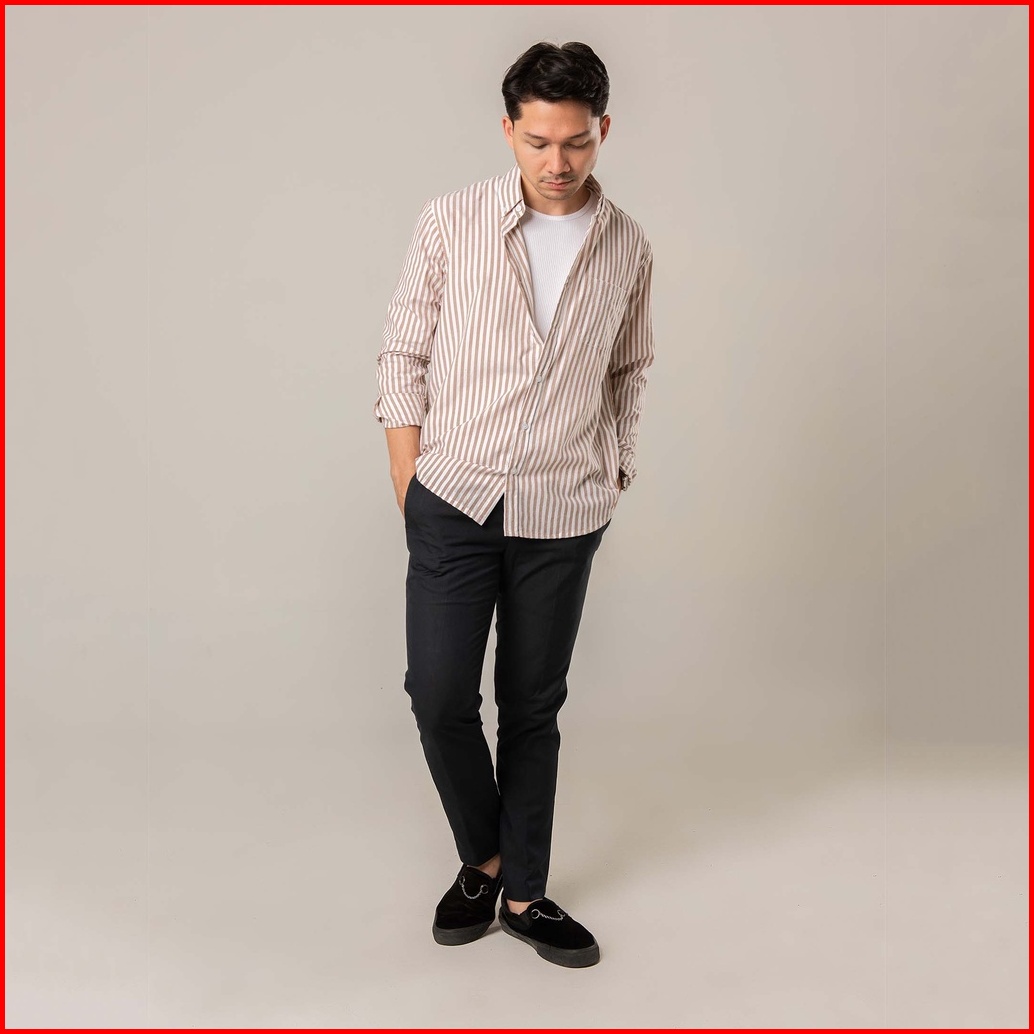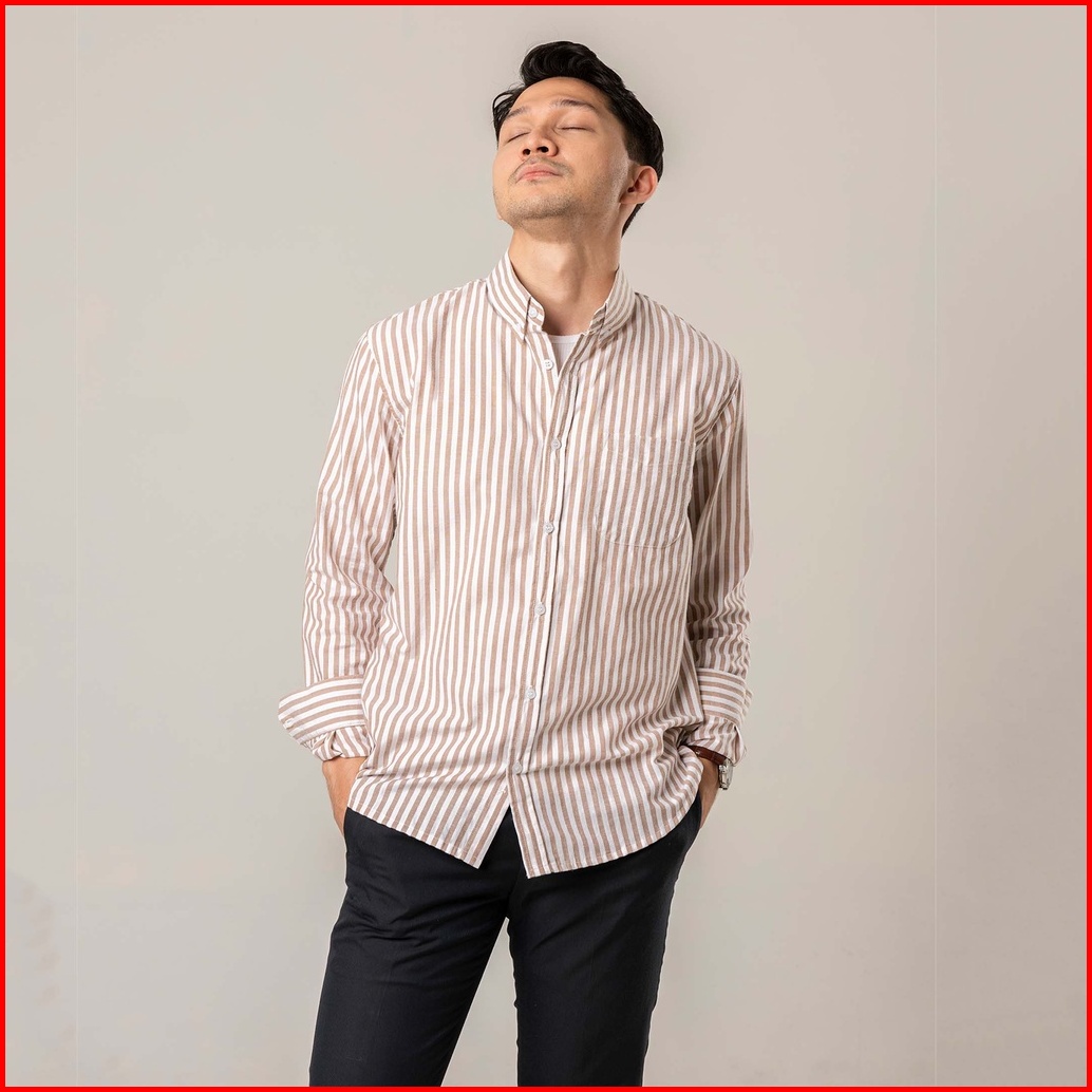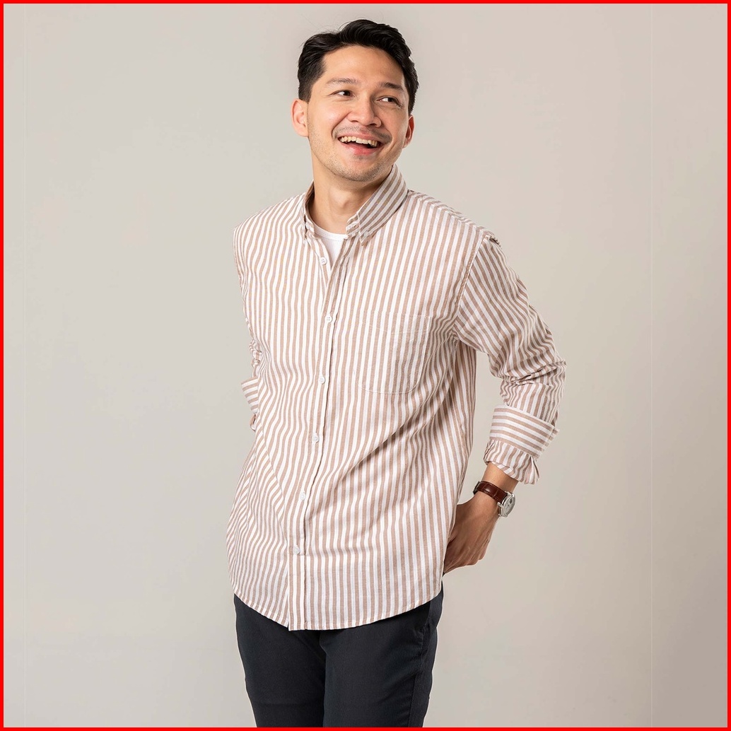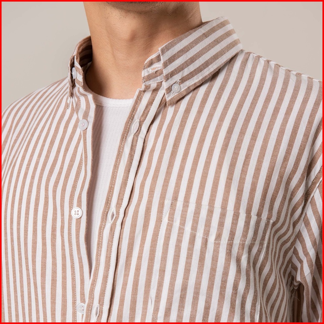 Kemeja Pria Garis Woodcutter Basic Butcher Stripe - Brown Lengan Panjang