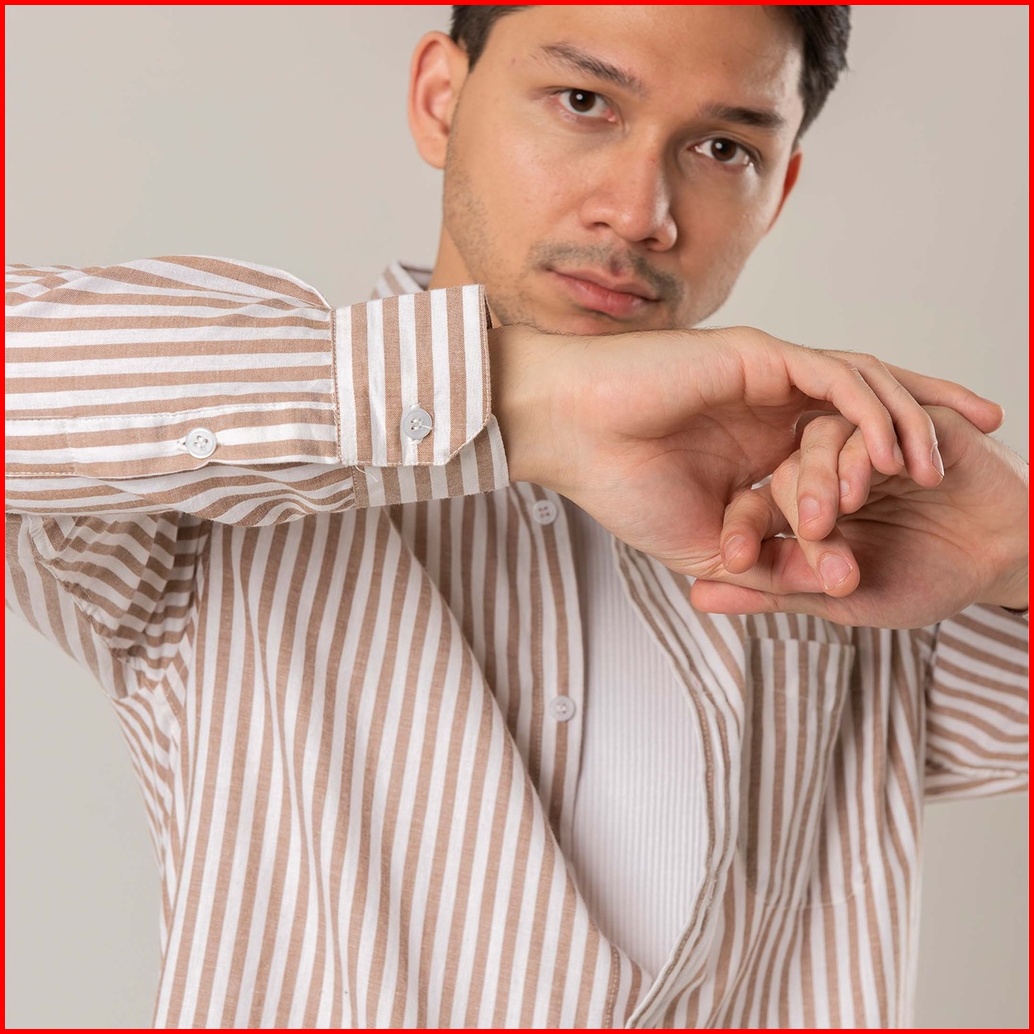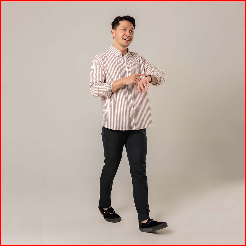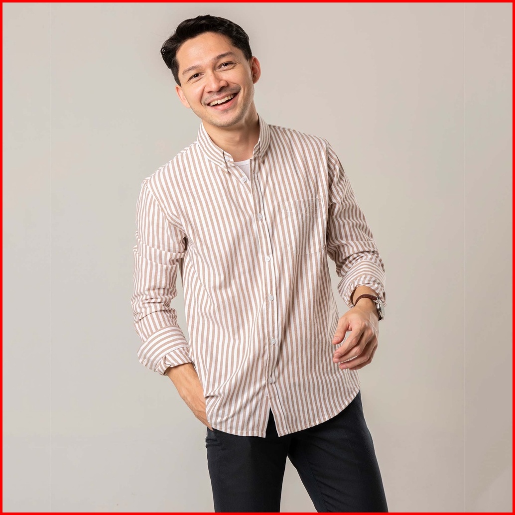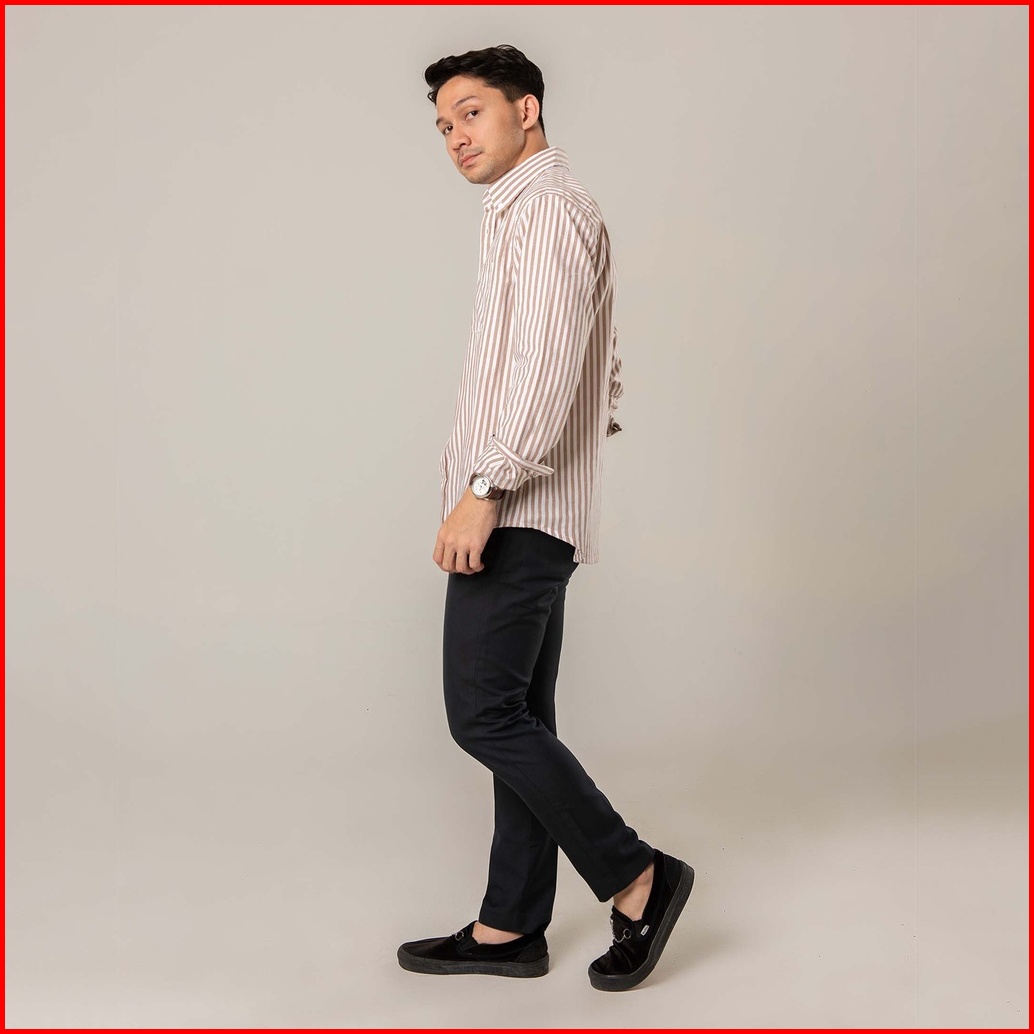 Kemeja Pria Garis Woodcutter Basic Butcher Stripe - Brown Lengan Panjang