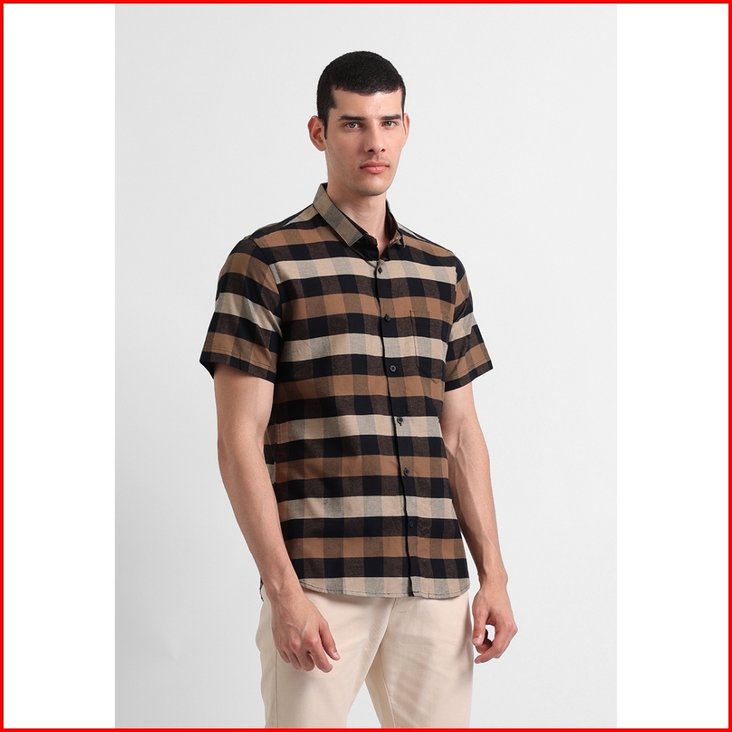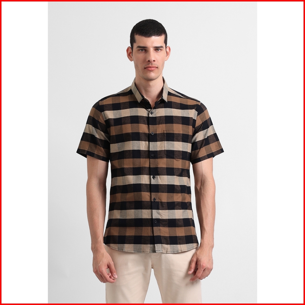 Manzone Kemeja Lengan Pendek Pria Slim Fit Rodrick 2 - Brown