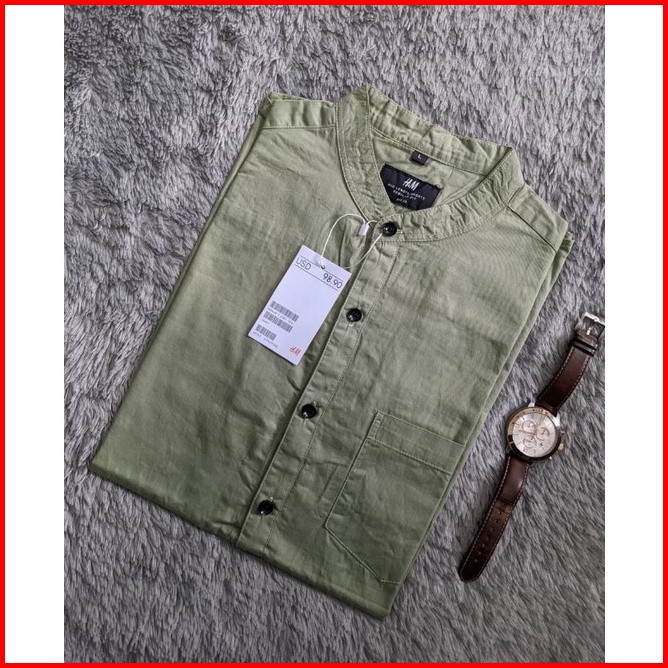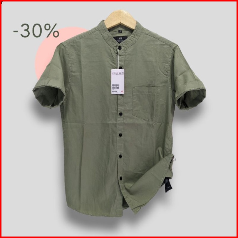 Kemeja Lengan Pendek Shanghai Hm Premium Kemeja Pendek Slimfit Soft Twill Katun Soft Green