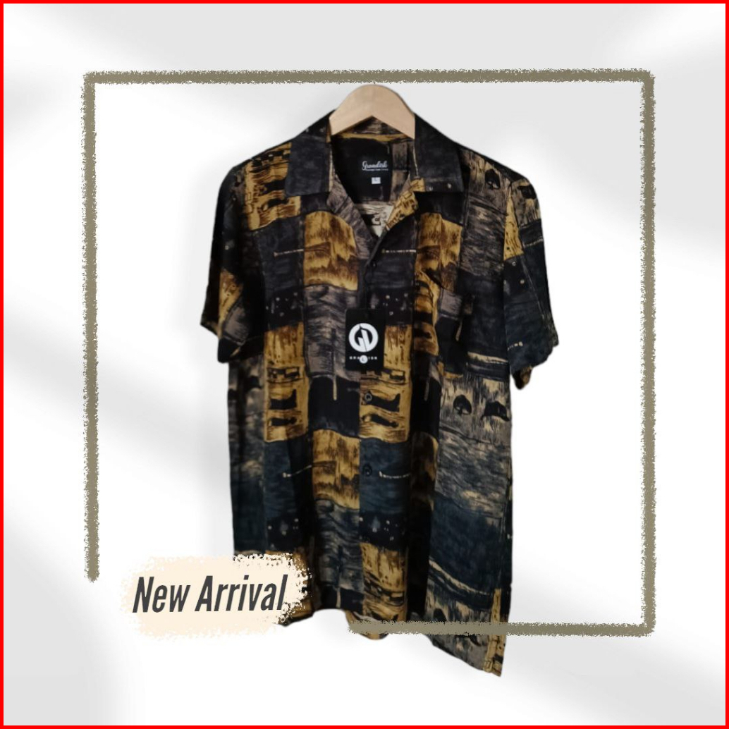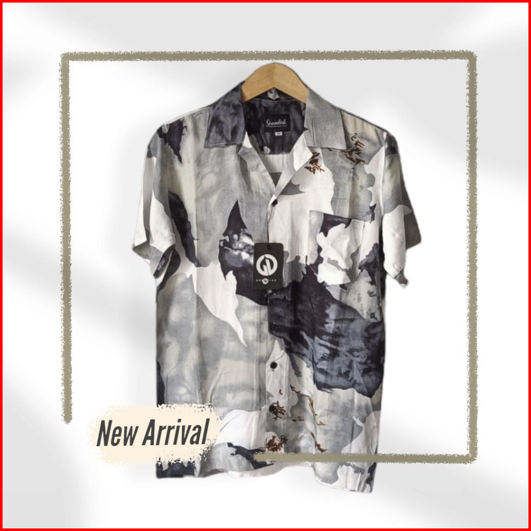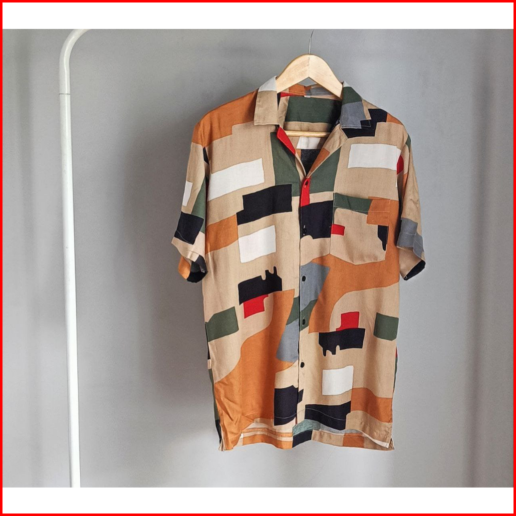 Kemeja Print Hawai Kemeja Pantai Abstrak Vintage Casual Lengan Pendek Retro Bahan Rayon Viscose Import Adem