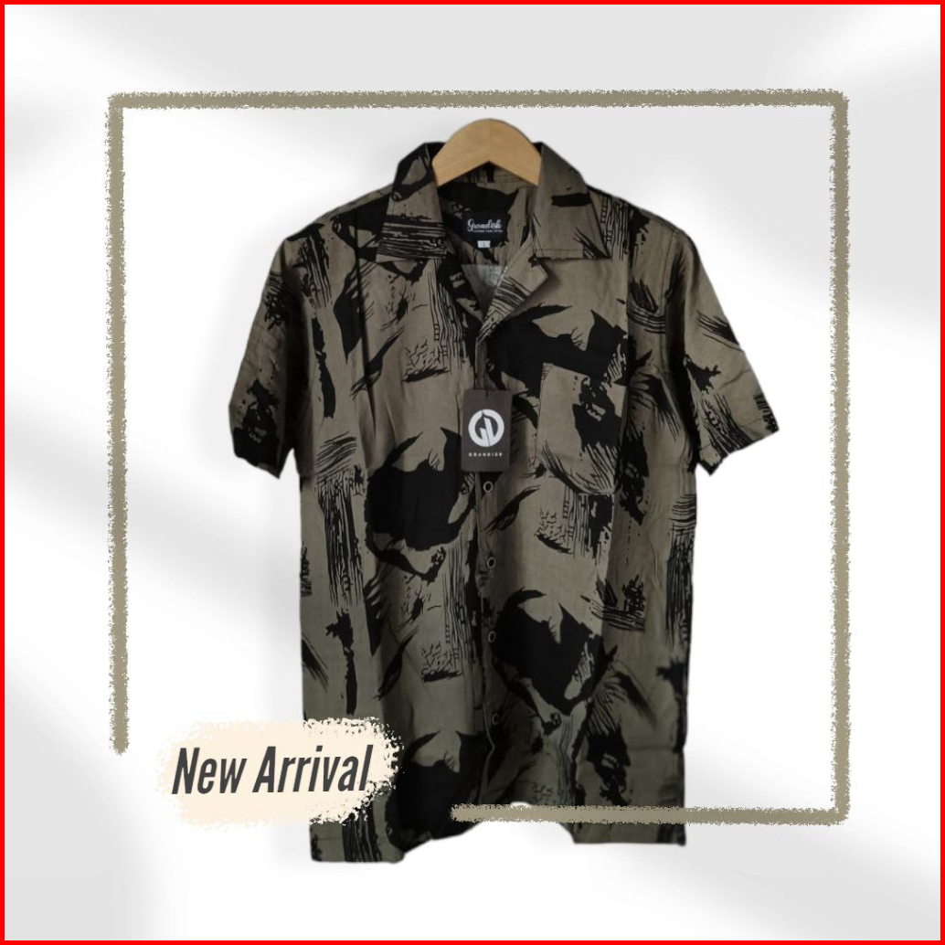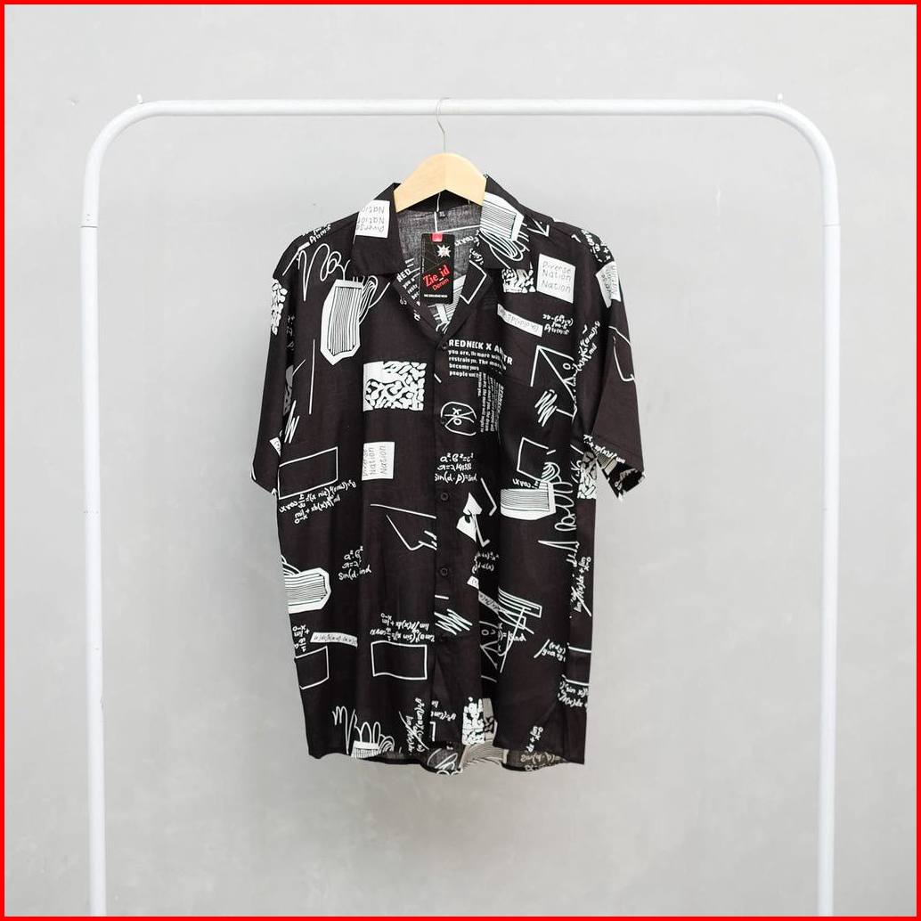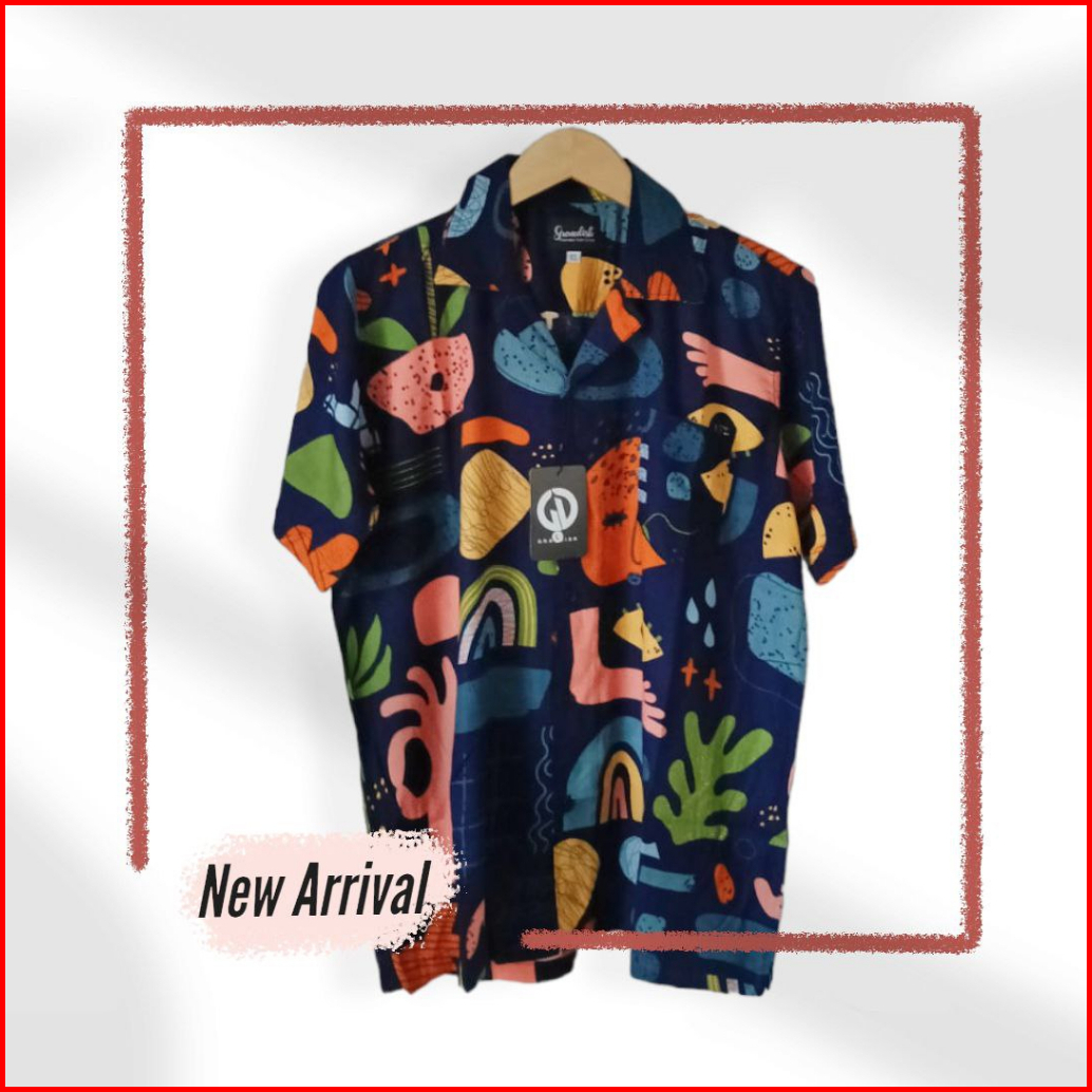 Kemeja Print Hawai Kemeja Pantai Abstrak Vintage Casual Lengan Pendek Retro Bahan Rayon Viscose Import Adem
