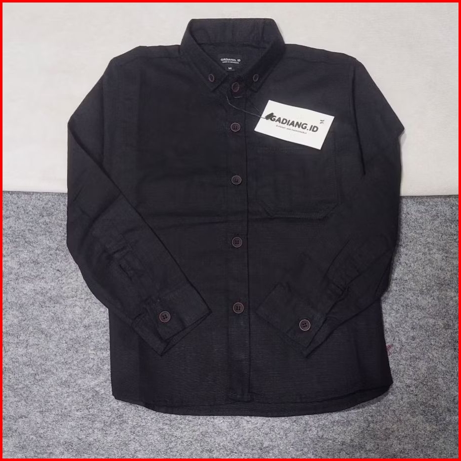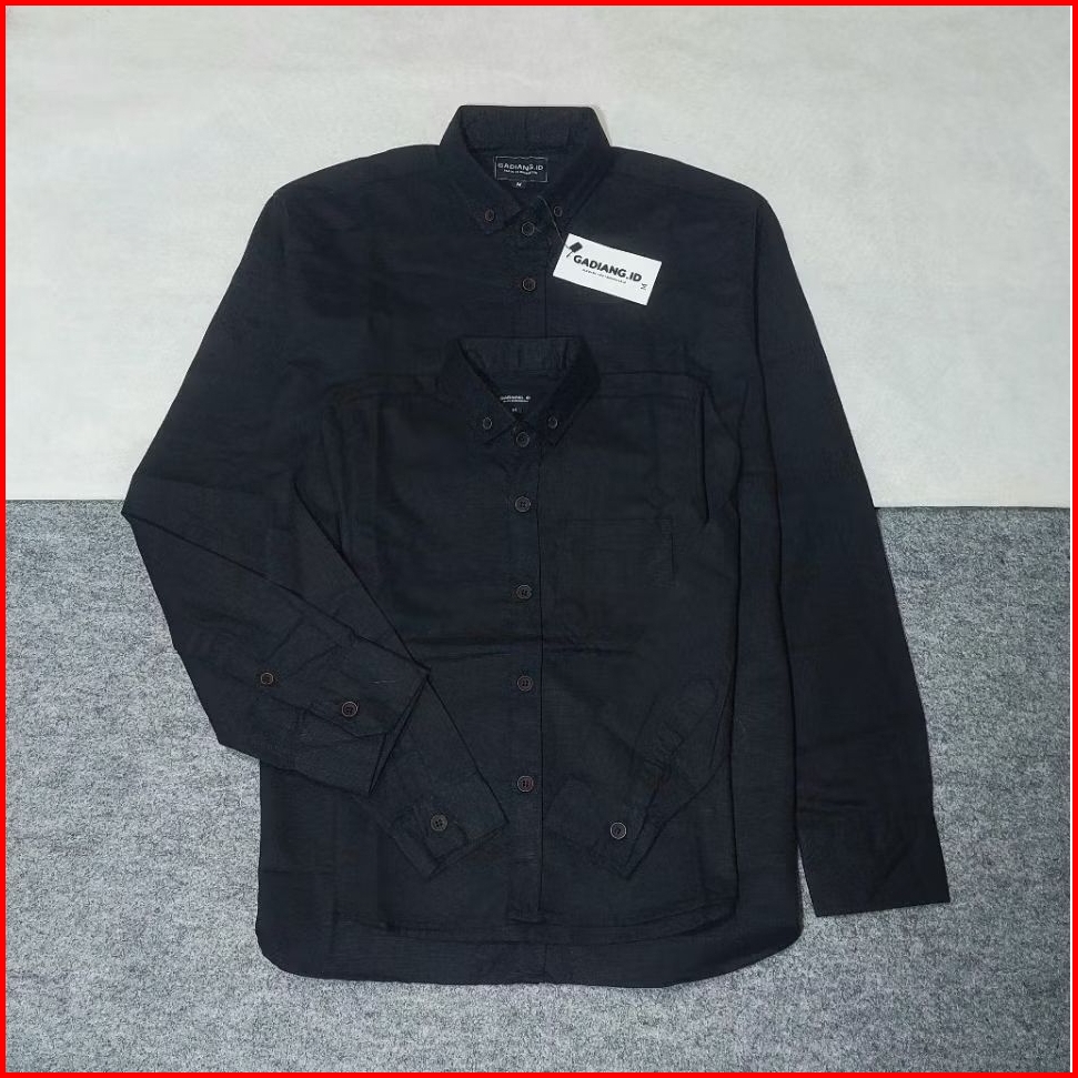 Kemeja Pria Basic Polos Couple Kopel Ayah Dan Anak Lengan Panjang Hitam