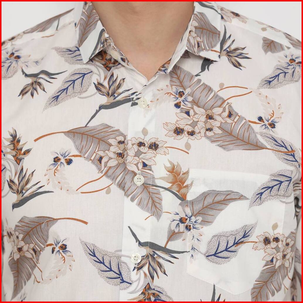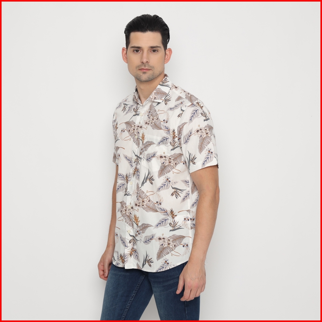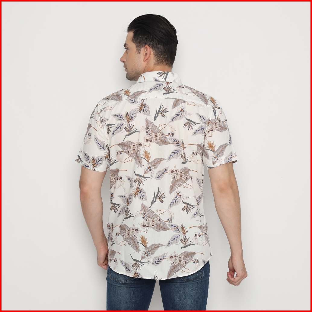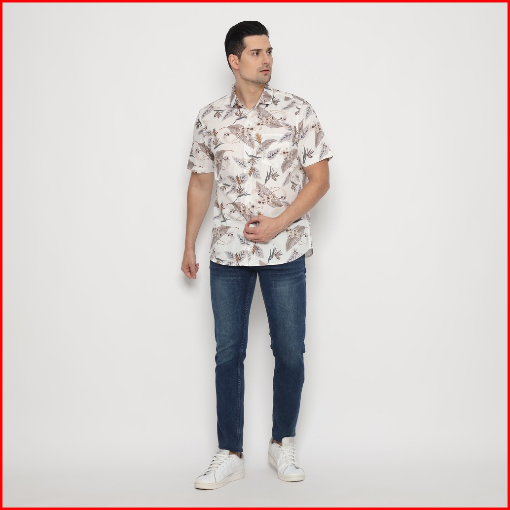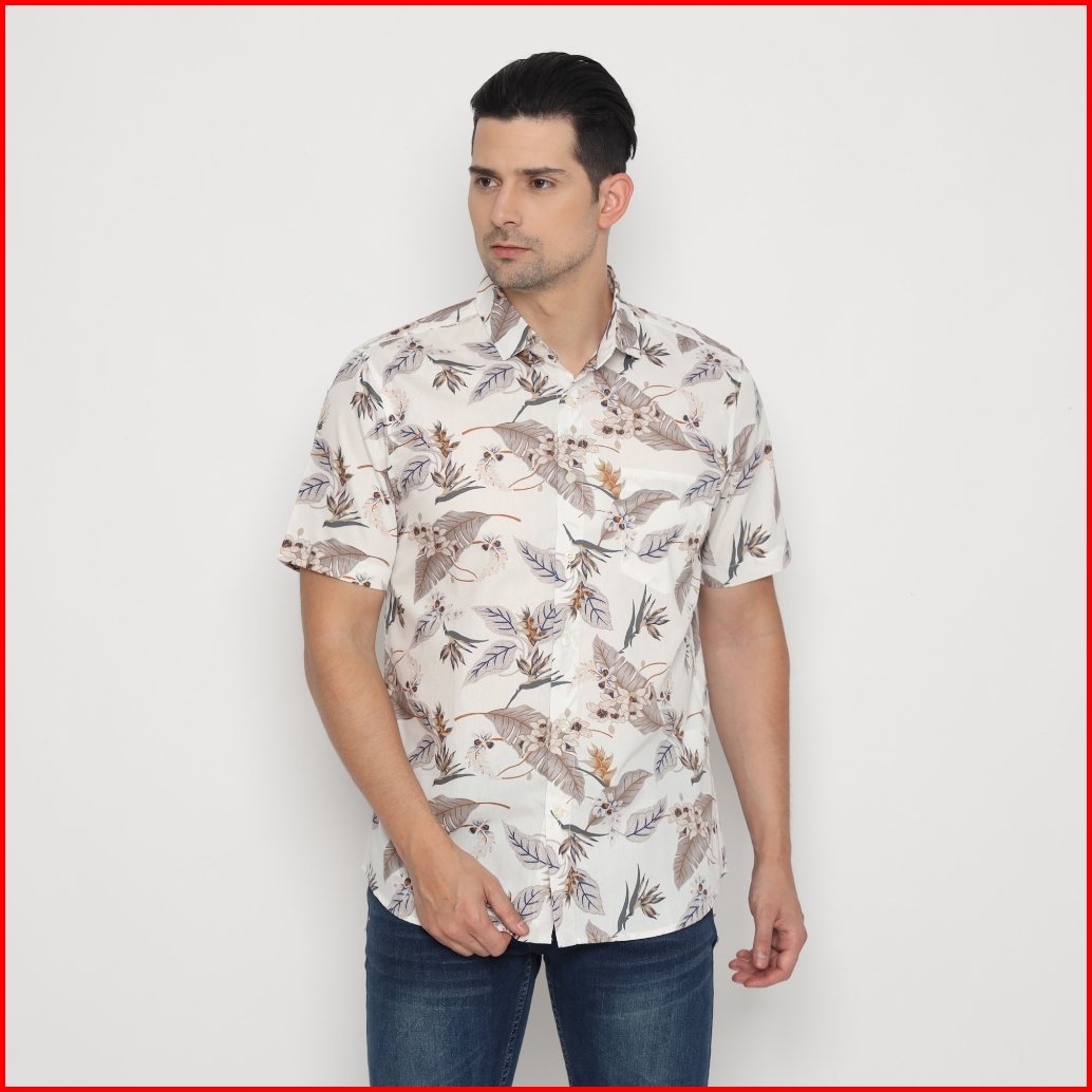 Platini Kemeja Motif Pria Lengan Pendek Katun Krem 73441