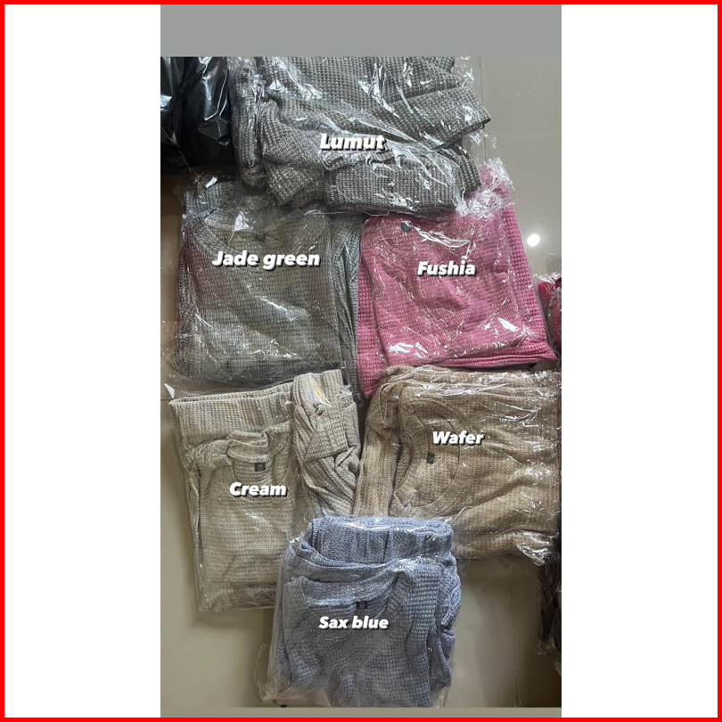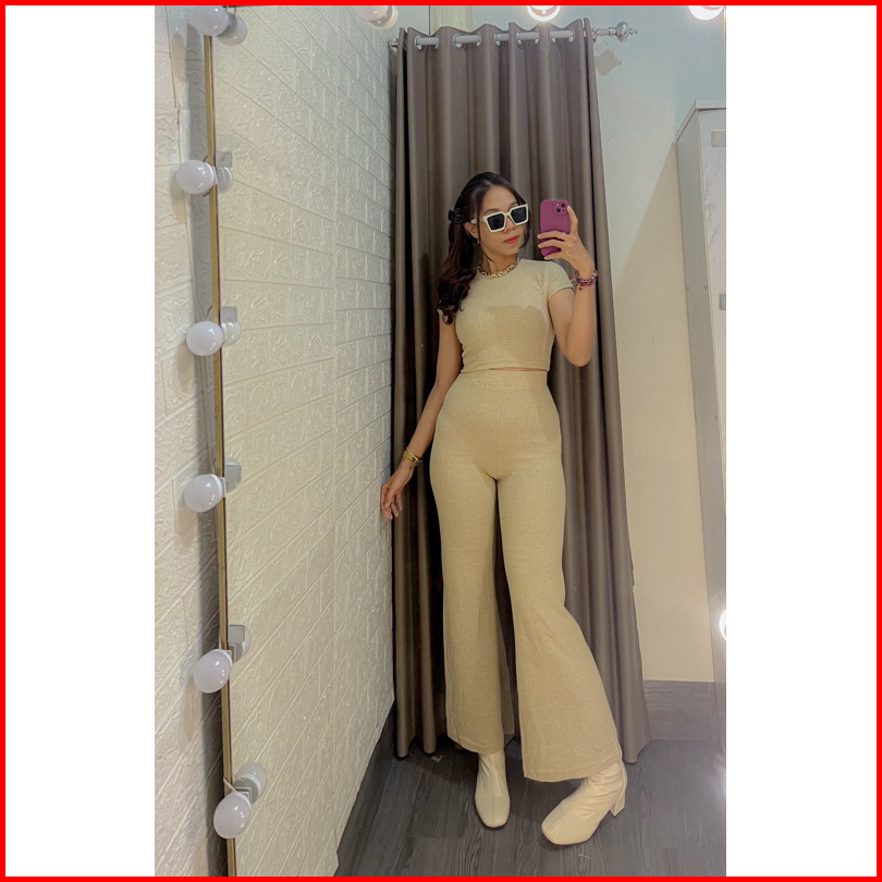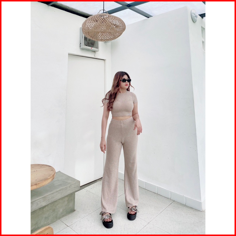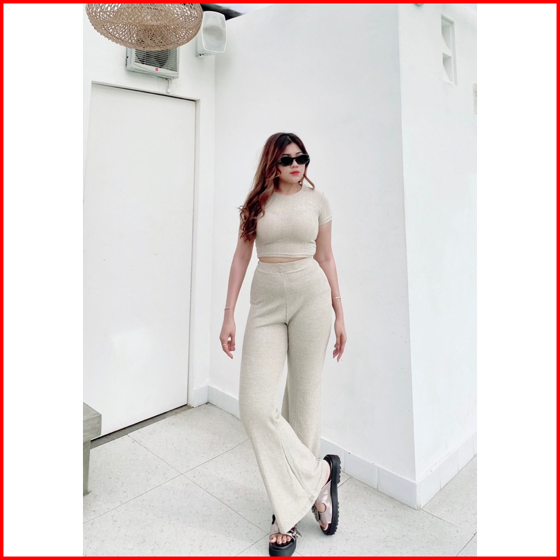 Hoki - Wafel One Set Rib Knit Top Kulot Cutbray Setelan Gadis Korean Satu Ukuran