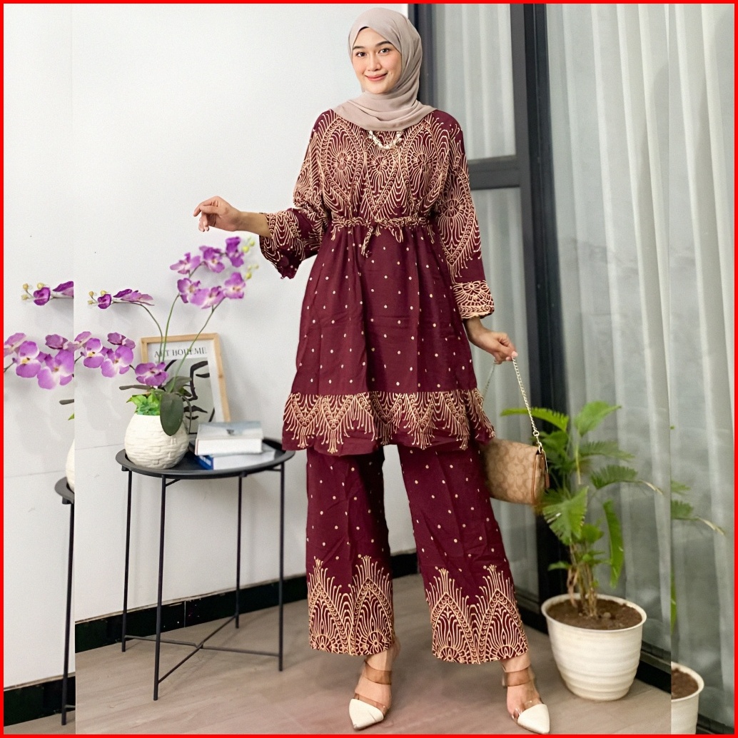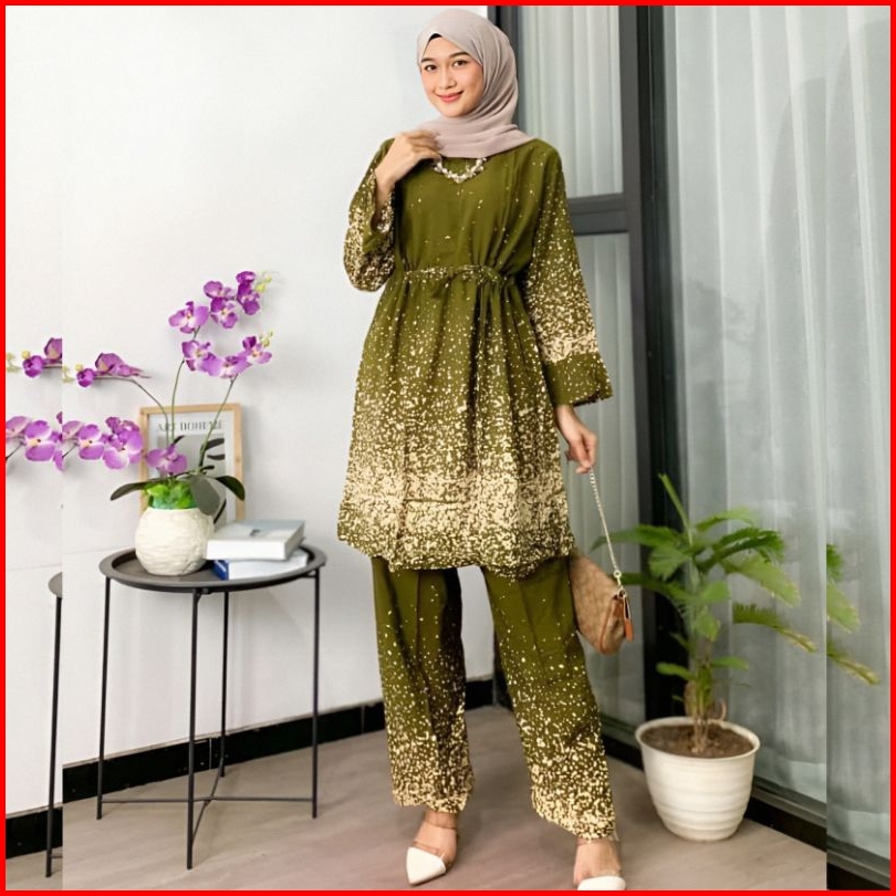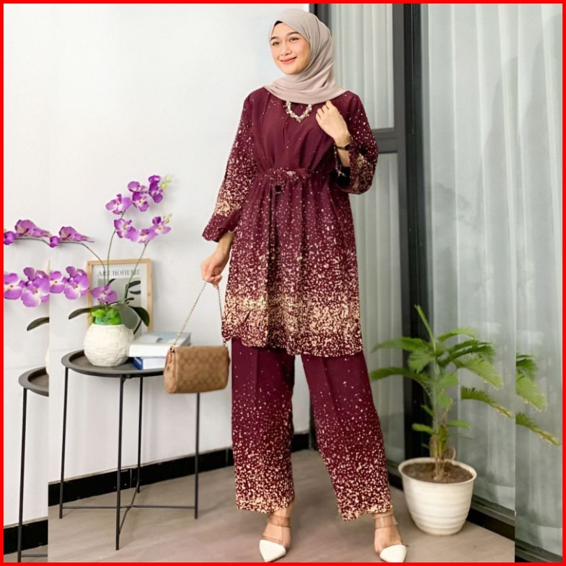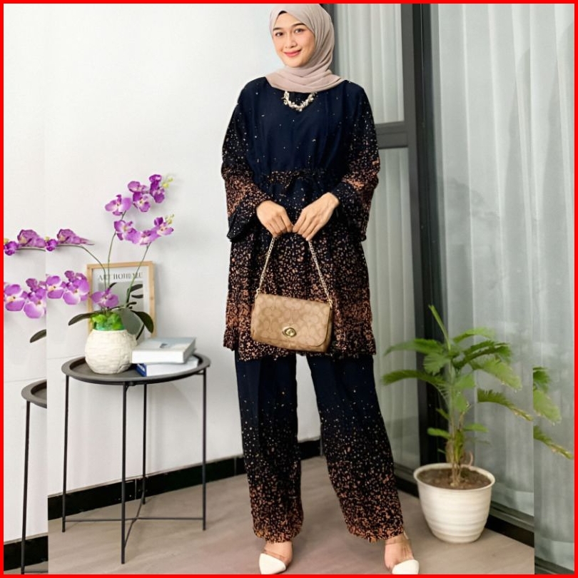 Setelan Wanita Kekinian Jumbo One Set Tyedie Set Meta Tunik Ld 120 Rayon Busui Lengan Panjang Premium
